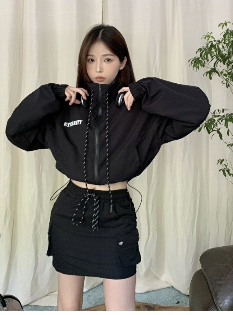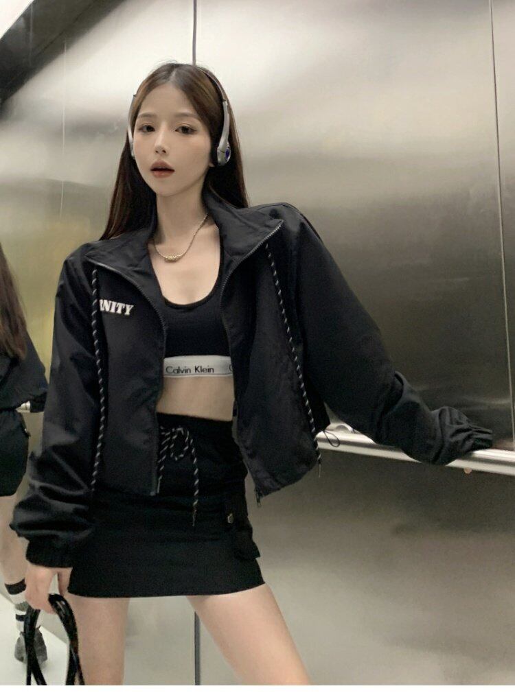 ブラックジャケット コート オータムカジュアルショートトップス ストリート 秋物 s576147682690285
