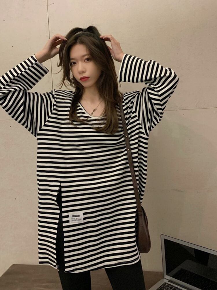 Tシャツ シャツ オータムウィンタールーズホワイトスリットトップス ロング 秋物 冬物 s576136798384260