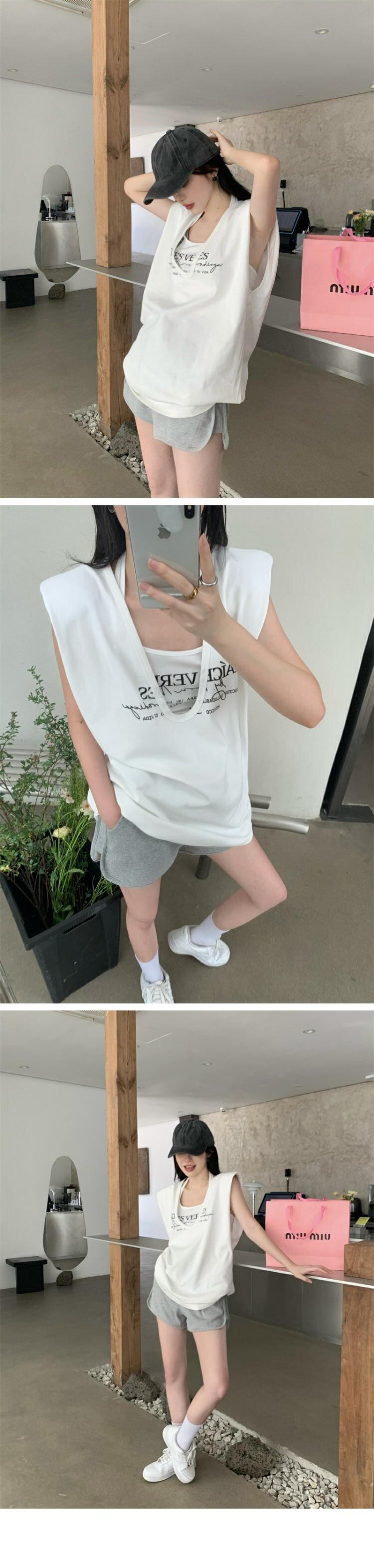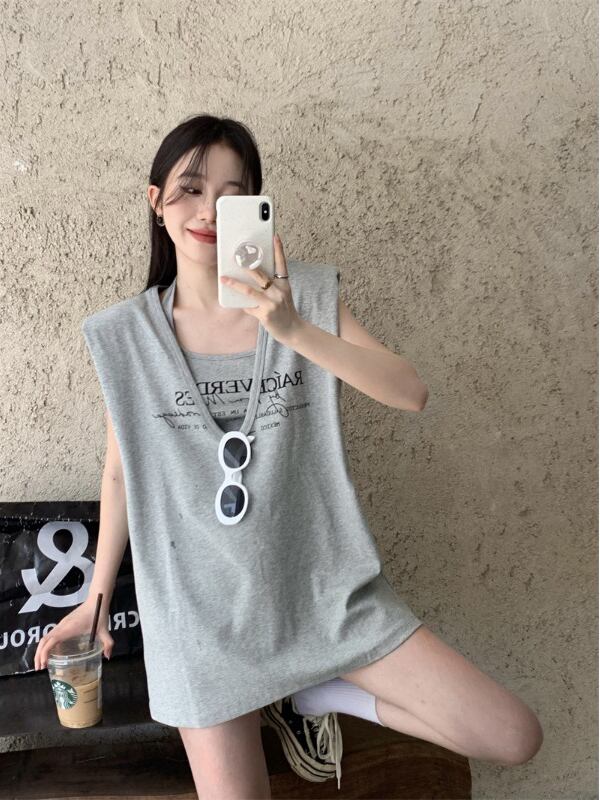 ノースリーブTシャツ サマールーズVネックトップス セット 夏物 s576167902975839