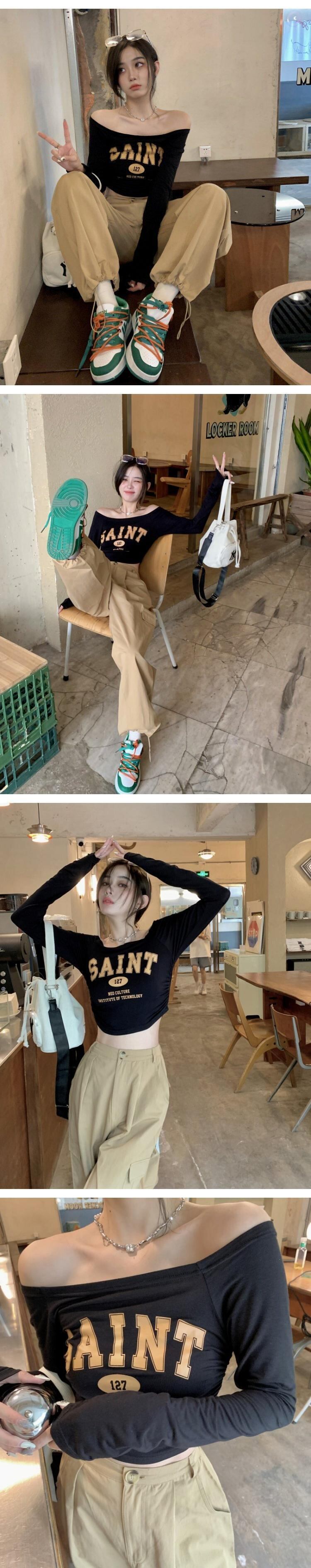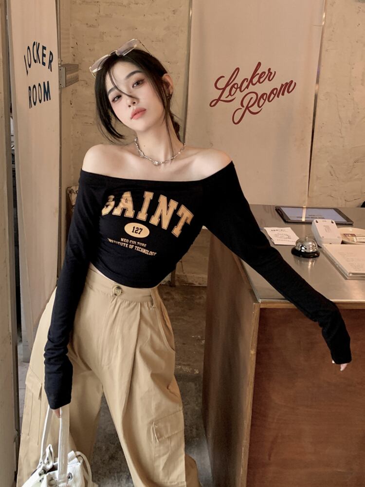 ショートトップス オータムスリムフィット薄手ブラック長袖スリーブTシャツ ロング 秋物 s576120456477479