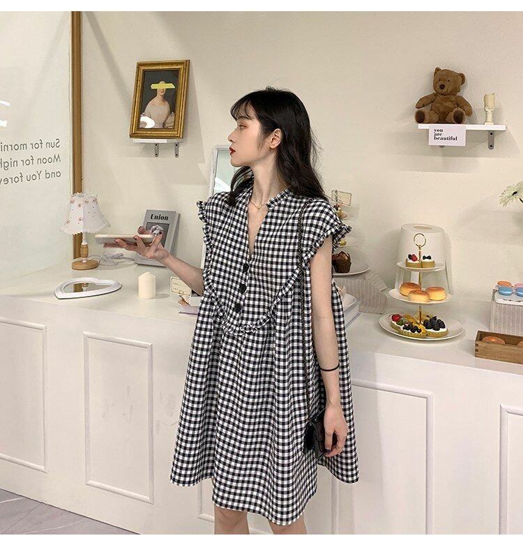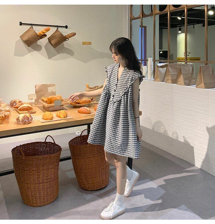 ブラックVネックノースリーブドレス サマースタイルショートスカート 大人ガーリー スウィート キュート カジュアル 夏物 s576161501156252