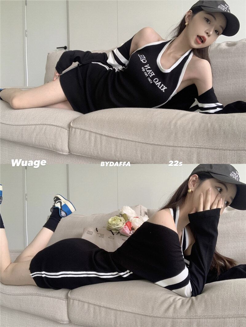 ブラックホルタードレス サマーバックレススリムショートスカート 夏物 s576144594309206