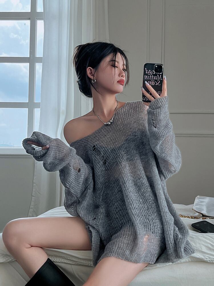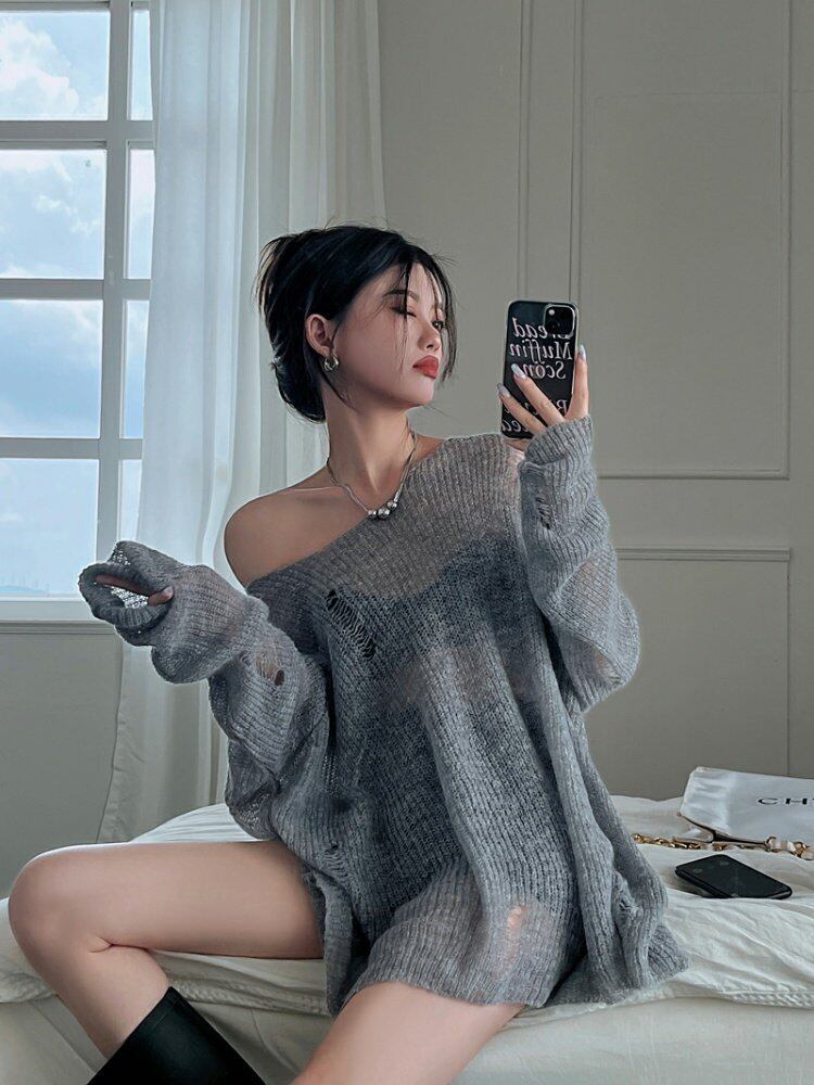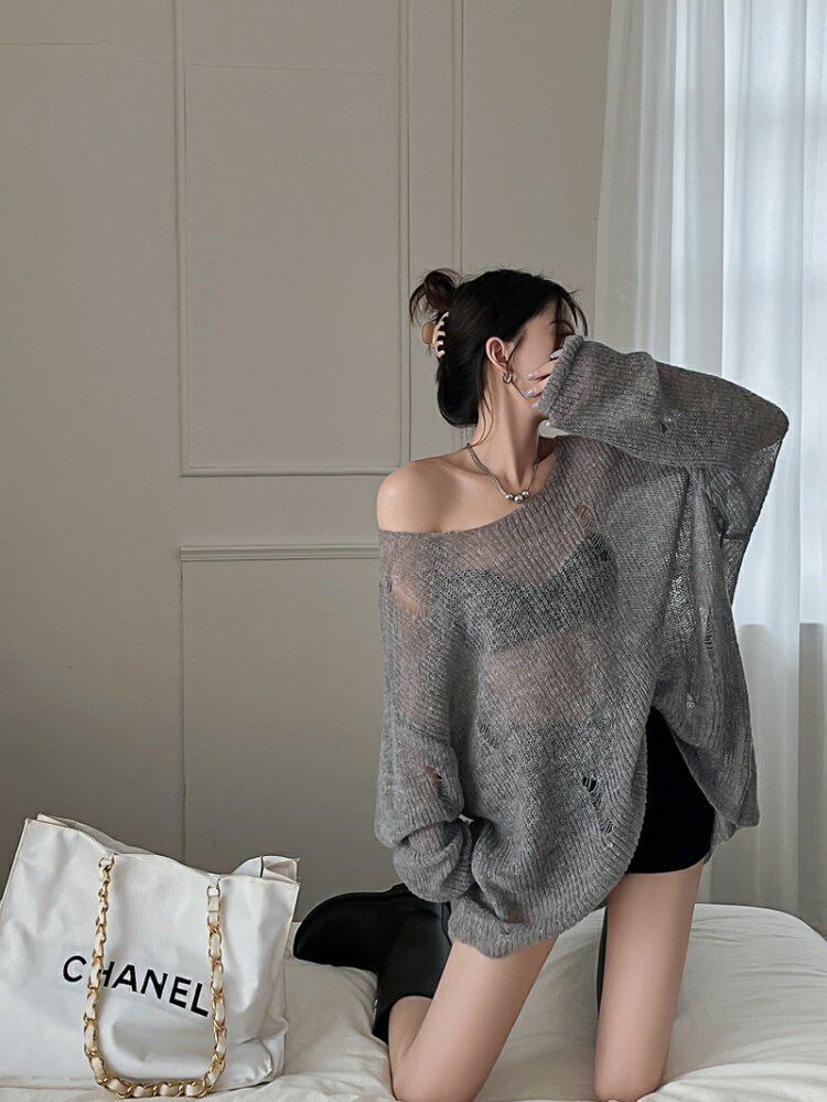 ブラウス サマー薄手セーター ルーズスタイルトップス ロング 夏物 s576114128634996