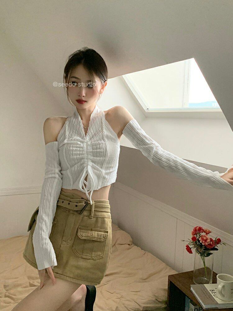 ホルタークロップトップ トップス オータムスリムTシャツ ロング 大人ガーリー スウィート キュート カジュアル 秋物 s576194654906699