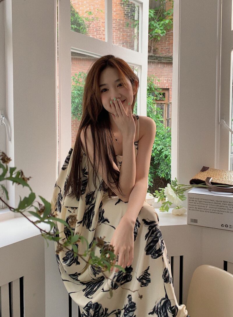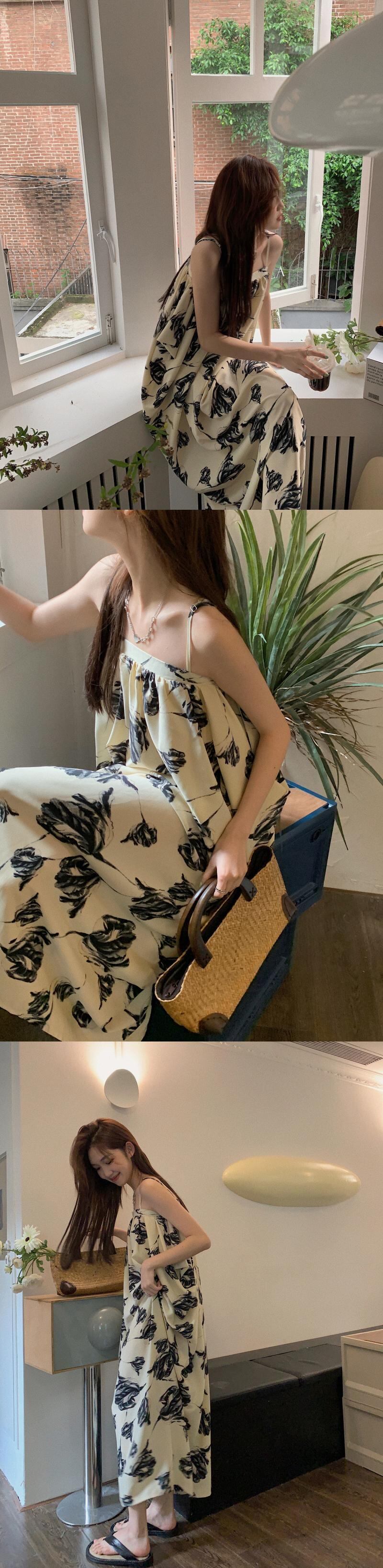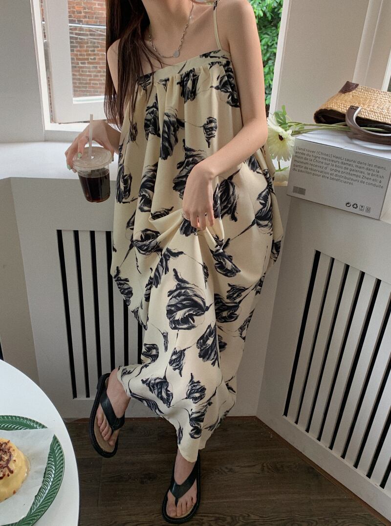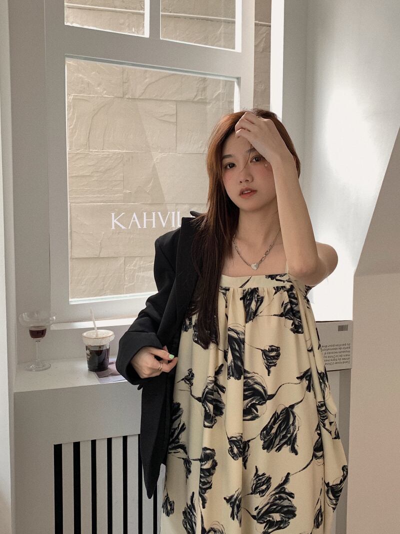 水墨画サスペンダードレス女性の夏 2022 新しいフレンチ気質穏やかな海辺の休暇シニアロングスカート サマー 夏物 s576162074150730