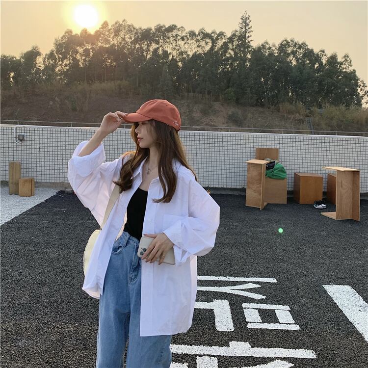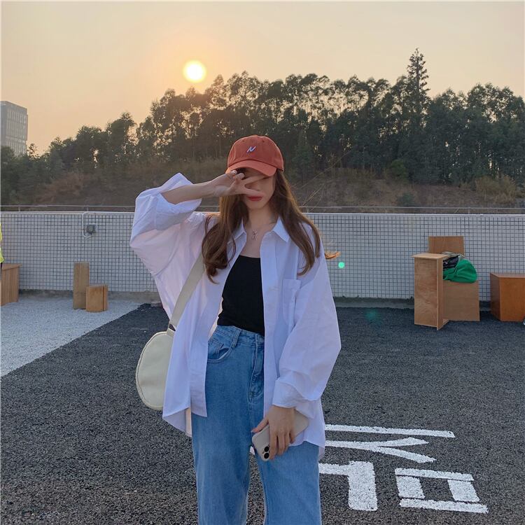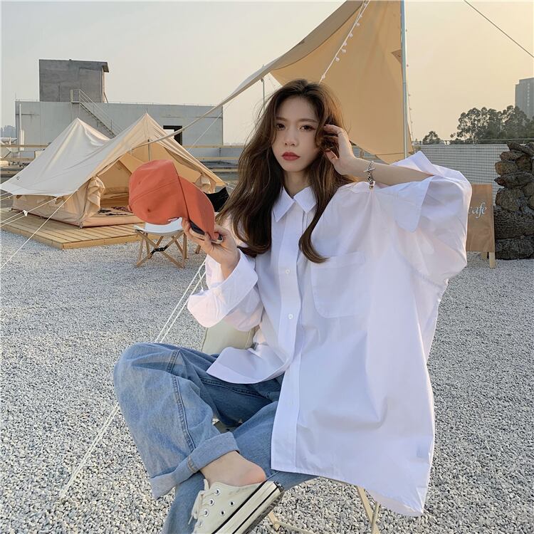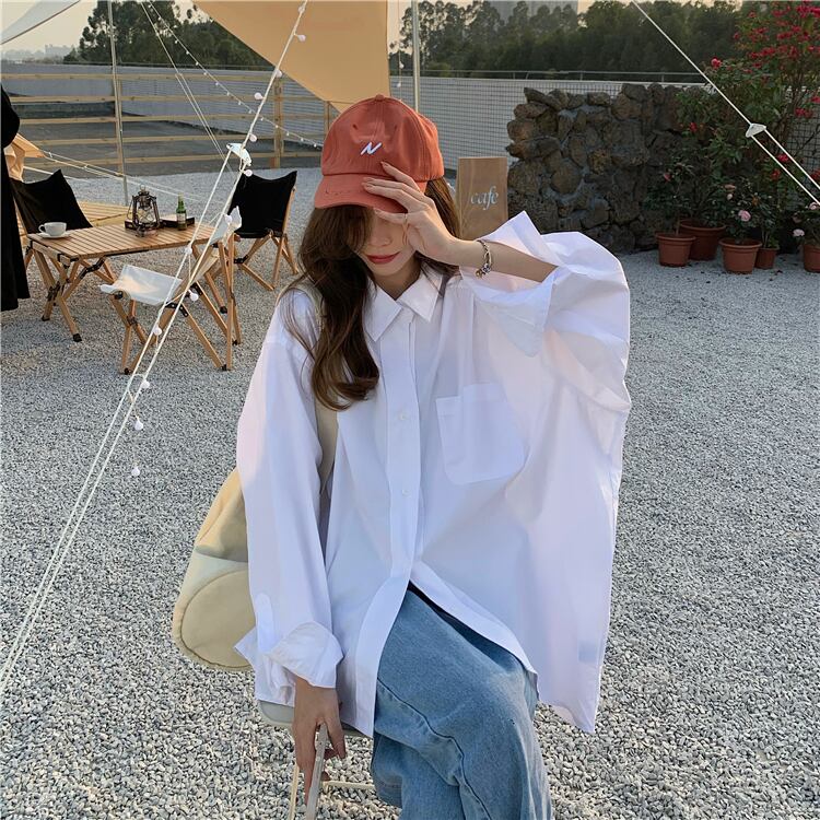 ボーイフレンドスタイルシャツ2022春秋韓国版オールマッチルーズカジュアルジャケットミドル丈白シャツレディーストレンド ホワイト スプリング 春物 オータム 秋物 s576172751436118