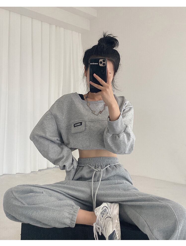 ワッフル スウェットパンツ レディース ルーズ スウェットパンツ 2022 新作 秋 スモール ハイウエスト グレー カジュアルパンツ オータム 秋物 s576194803383144