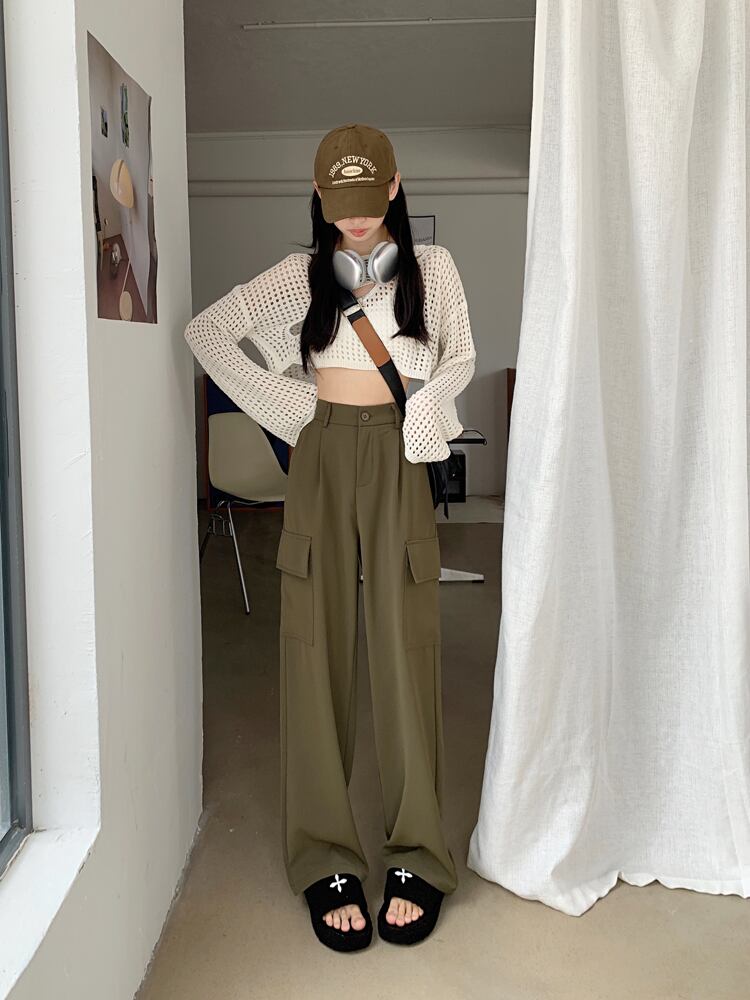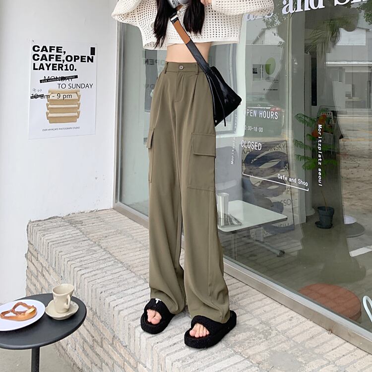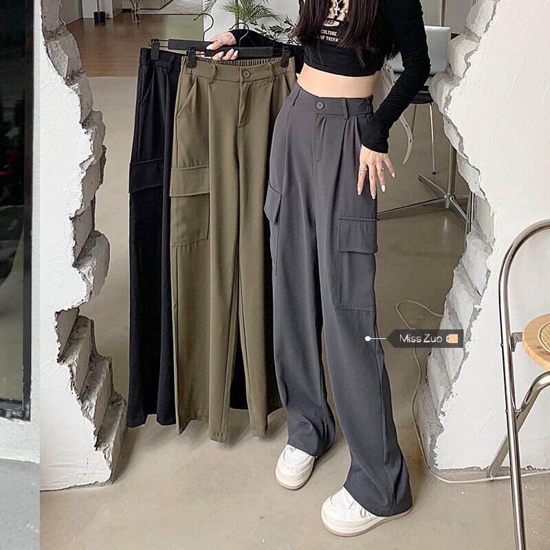 グレー スーツ パンツ女性のハイエンド ドレープ モップ パンツ 2022 新しいハイウエスト スリム ストレート チューブ ツーリング ワイドレッグ ロング パンツ s576117995861170