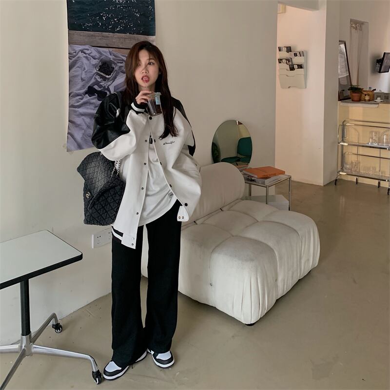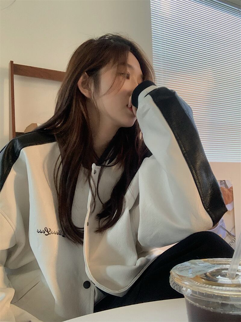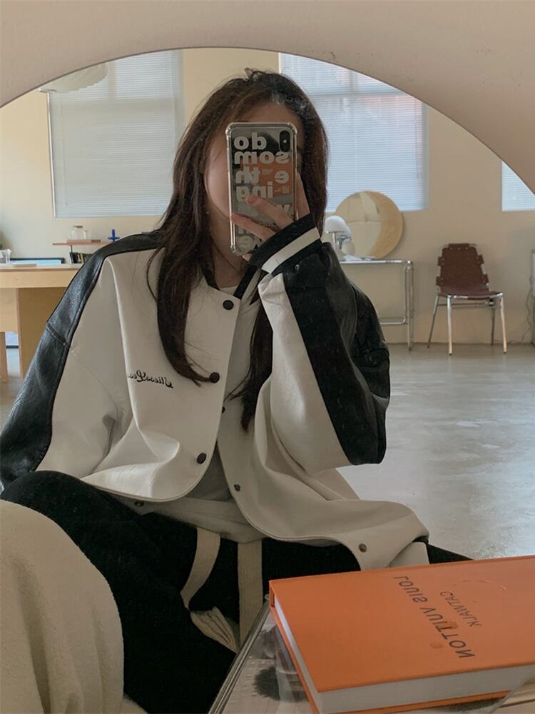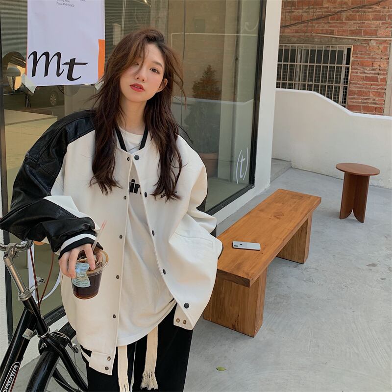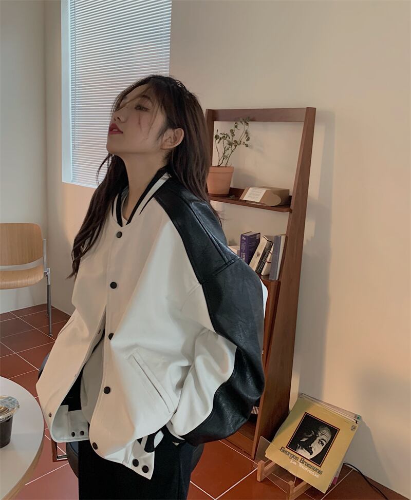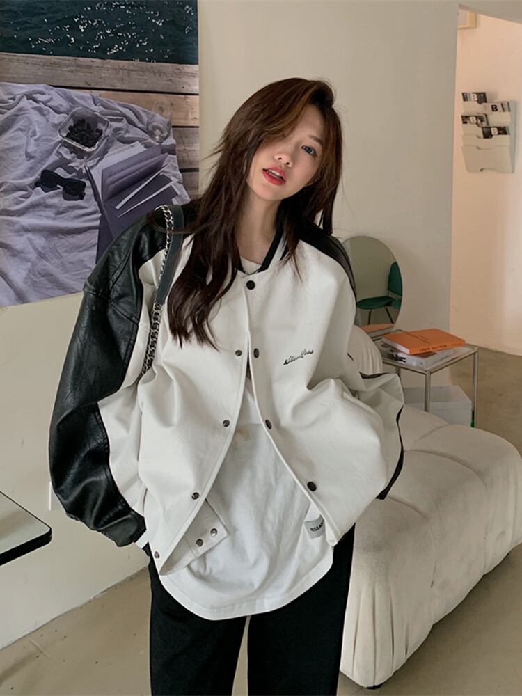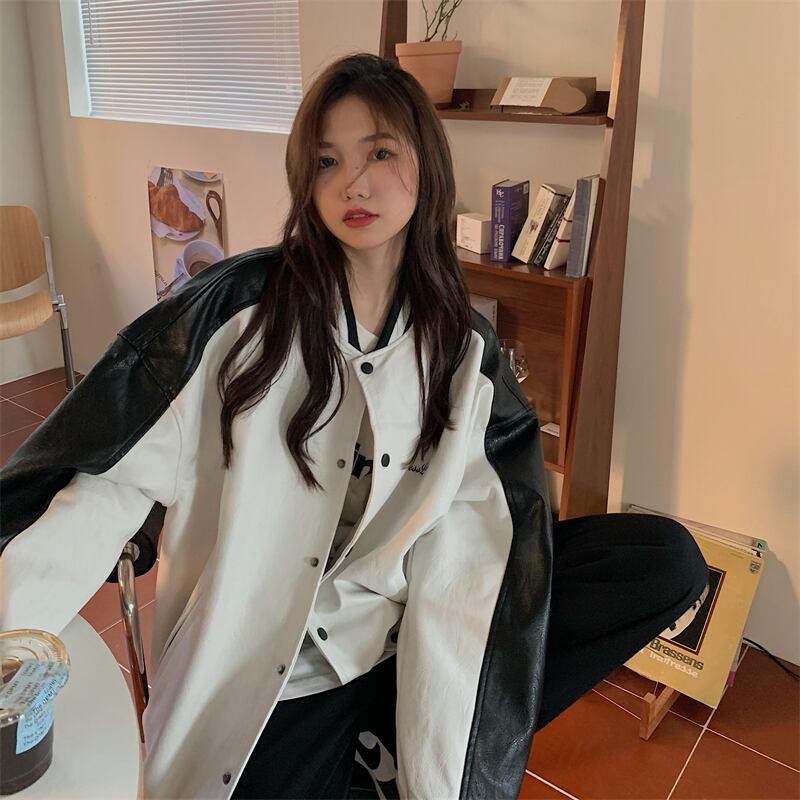 野球ユニフォームレザージャケットレディース秋冬2022新作アメリカンレトロハイストリートオーバーサイズジャケットトップ オータム 秋物 ウィンター 冬物 s57617779111772