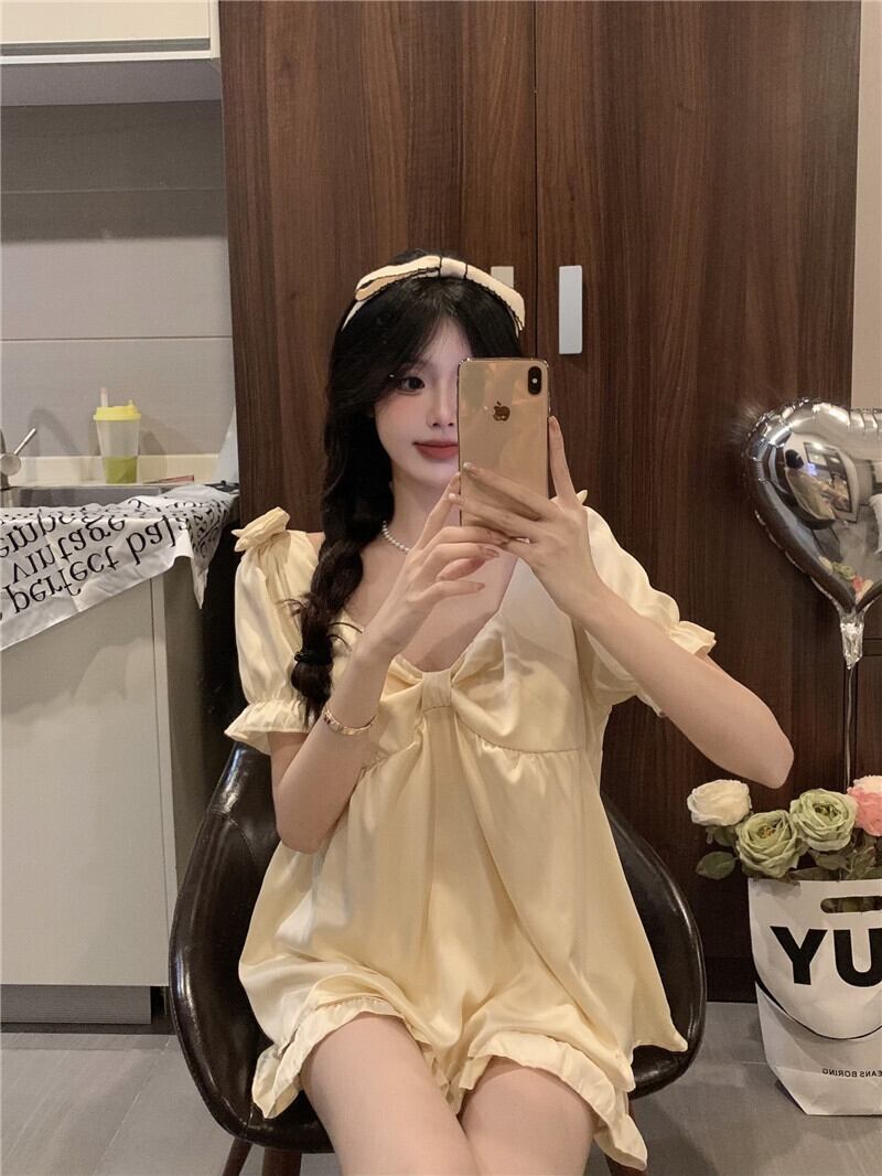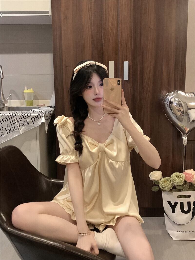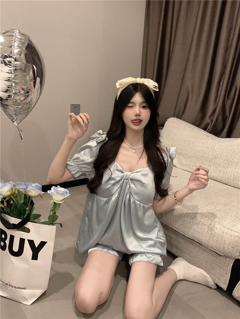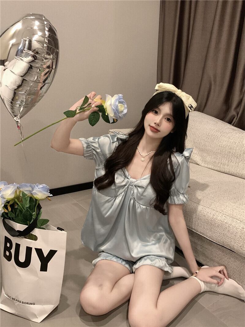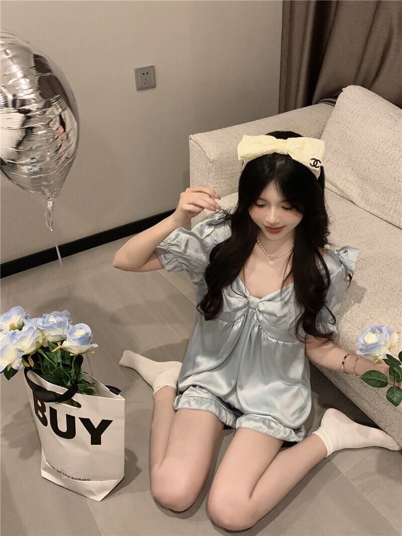 氷の絹のパジャマの女性の夏の薄い部分は、2022年の新しい純赤の人気のあるハイエンドの甘い家の服のスーツの外で着用することができます レッド 大人ガーリー スウィート キュート カジュアル サマー 夏物 シルク s576187898410843