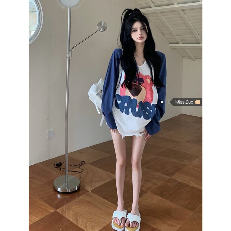 フード付き 長袖 Tシャツ レディース デザインセンス ニッチ 秋 オーバーサイズ ボトムス 抜け感 異国風 更年期 ルーズ トップス ロング オータム 秋物 s576169812915531
