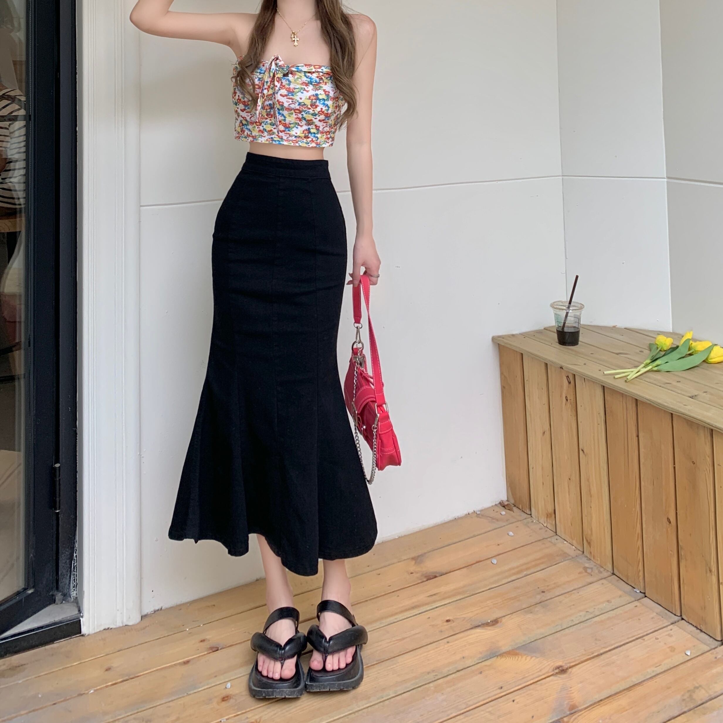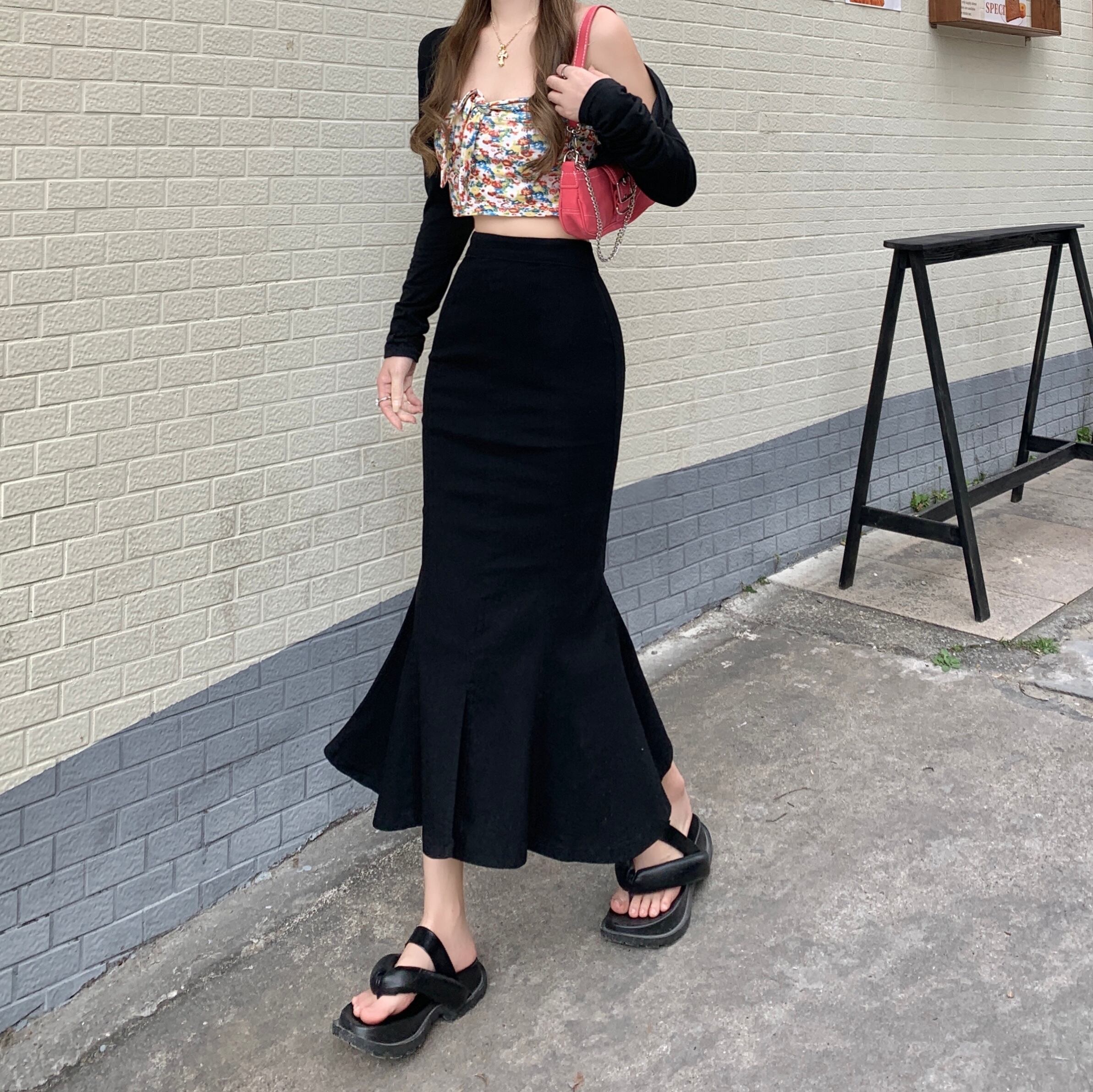 黒スカート女性の夏のデザインセンスニッチフィッシュテールスカート 2022 新しい小さなハイウエストバッグヒップロングスカート ハイウェスト ブラック サマー 夏物 s576170628445784