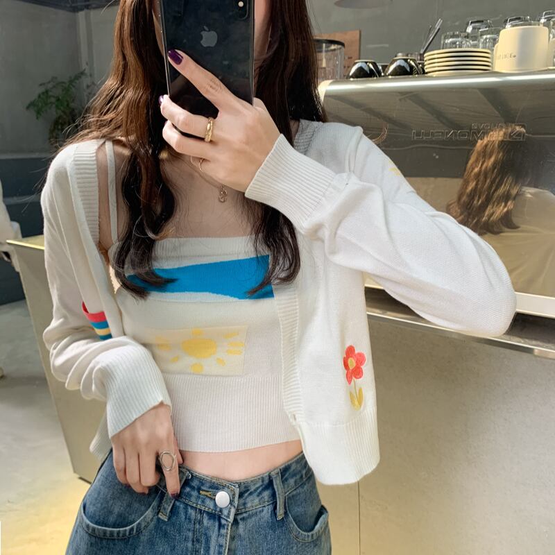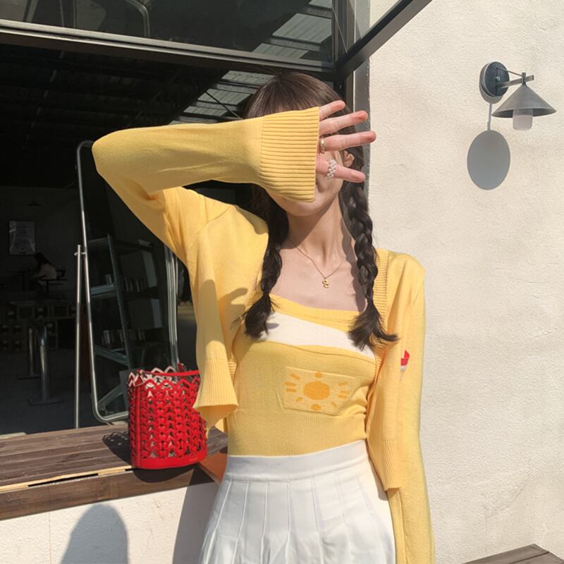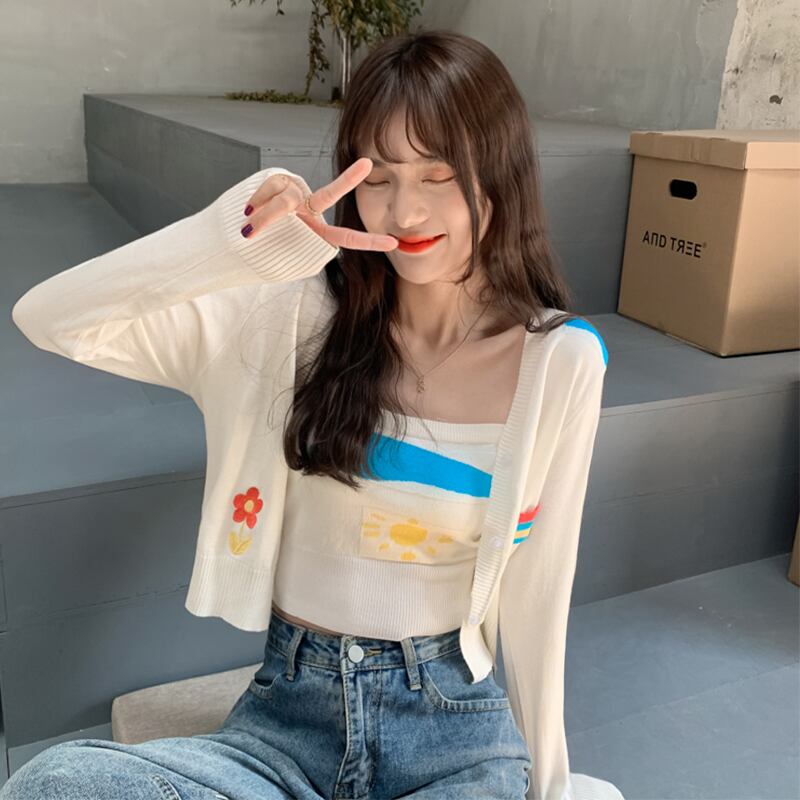 Hyun Ya スタイル ショート トップ女性の初春秋セーター コート 2022 新しいニット サスペンダー カーディガン 2 点セット スプリング 春物 オータム 秋物 s576190365632402