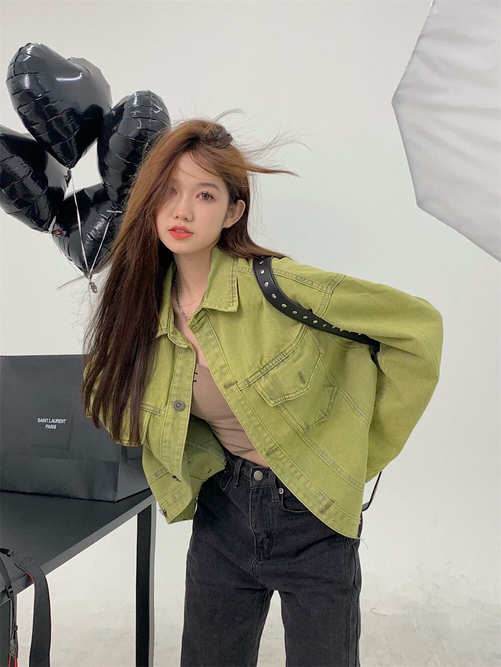 グリーン デニム ジャケット レディース 韓国語バージョン ゆったり 初秋 アメリカン レトロ デザイン センス ニッチ フライド ストリート シャツ タイド イン オータム 秋物 s576165134480810