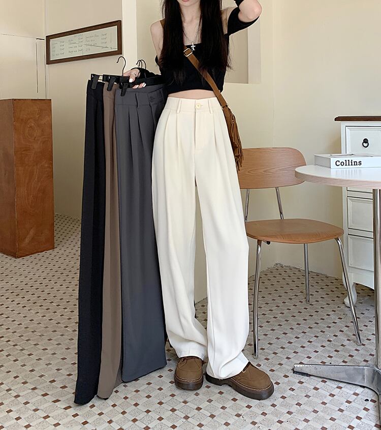 ホワイト スーツパンツ レディース 2022年 秋新作 ハイウエスト ドレープ ワイドレッグパンツ ストレート ルーズ カジュアル ロングパンツ オータム 秋物 s576188342467771