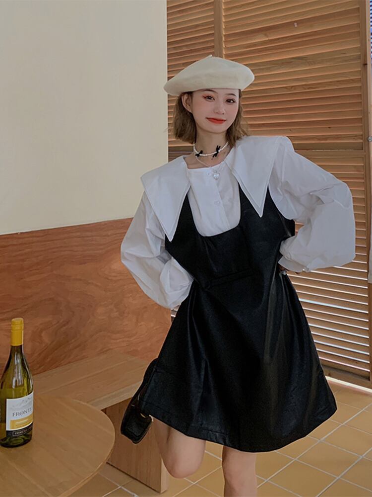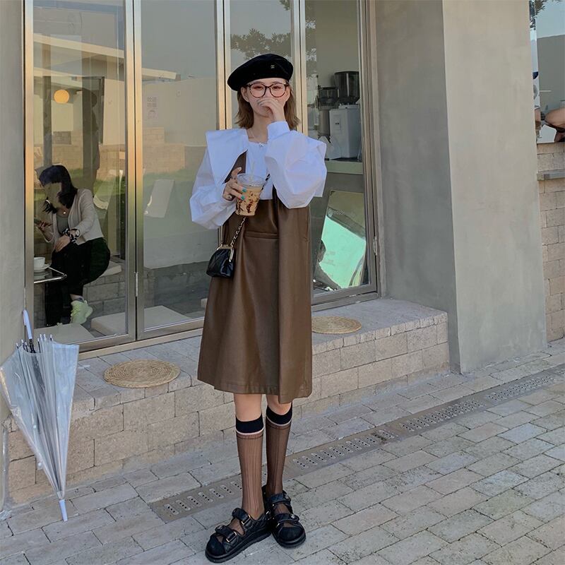 レザー スカート ストラップ ドレス 女性 デザイン センス ニッチ 秋 フレンチ 優しい 気質 年齢 減少 洋式 美術 学生 スカート オータム 秋物 s576167805038877