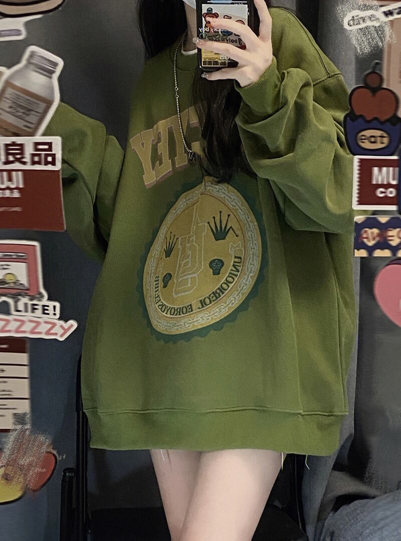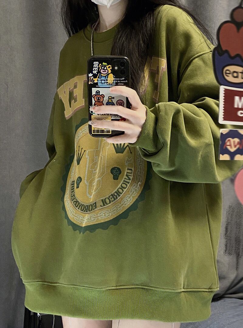 アメリカのレトロなプリントセーターの女性の 2022 年秋新しい怠惰なスタイルルーズラウンドネックトップコート ins 潮 オータム 秋物 Oネック s576139215907914