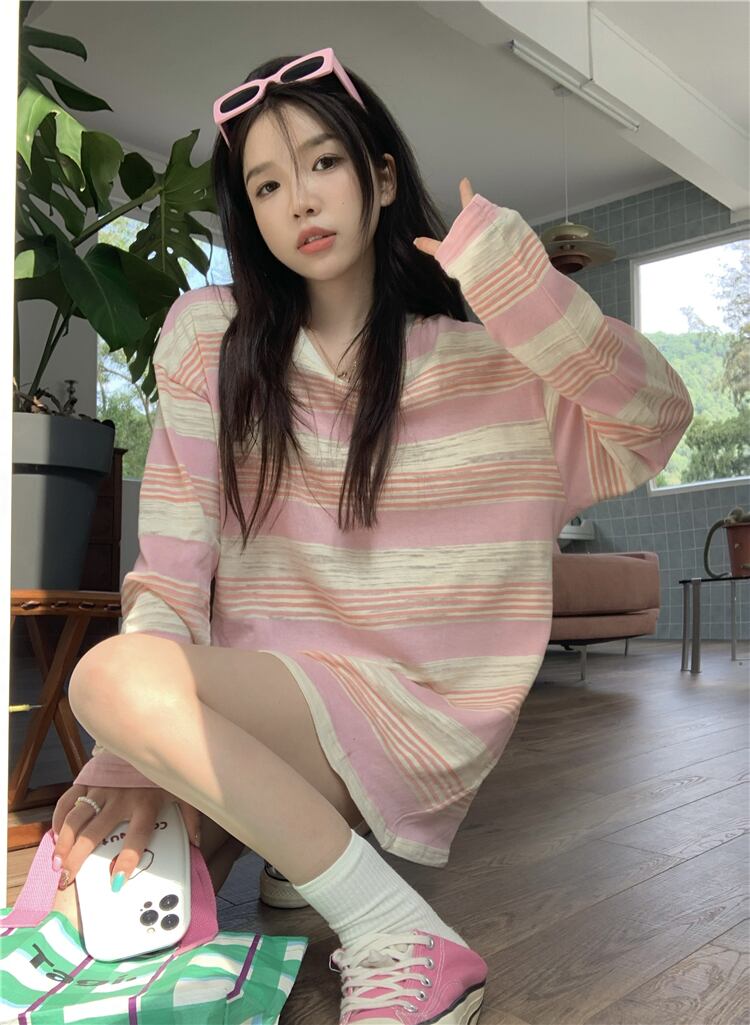 ストライプ 長袖 Tシャツ レディース 夏 薄手 2022年 新デザイン ニッチ ルーズ ミドル丈 カジュアルトップ ロング サマー 夏物 s57613887452984