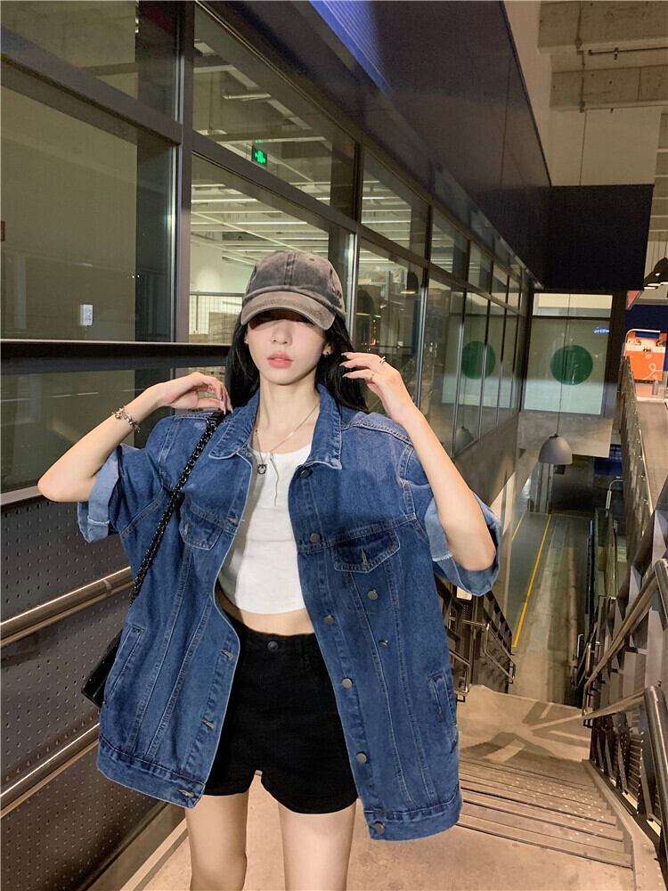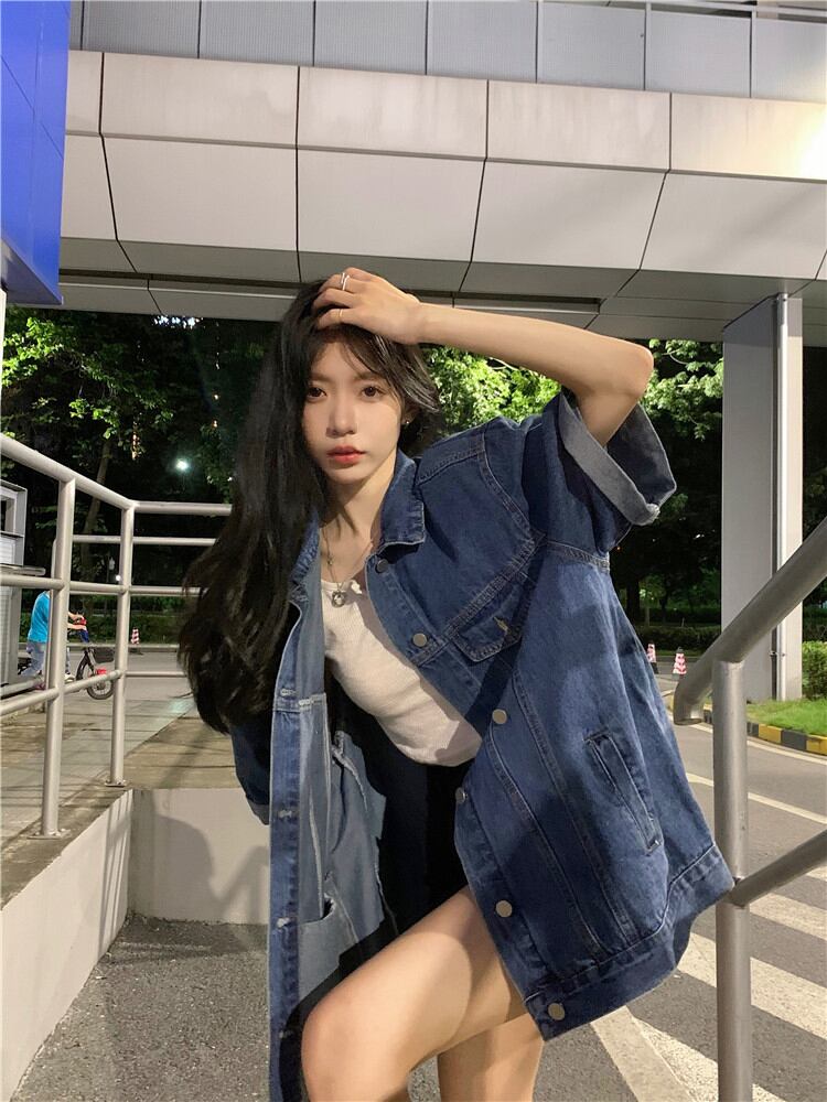 半袖デニムジャケットレディース2022年夏新作香港風レトロシックデザインニッチルーズシックトップ サマー 夏物 s576125032475708