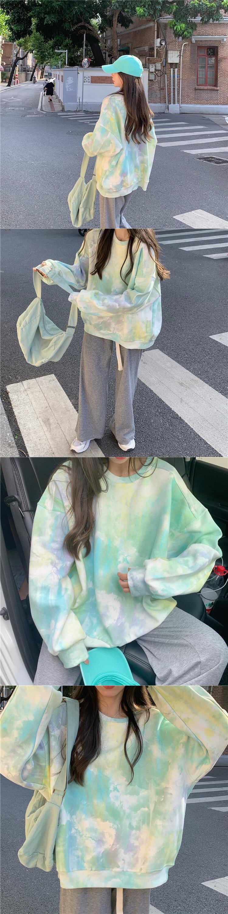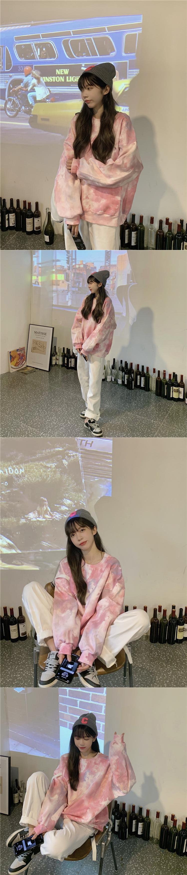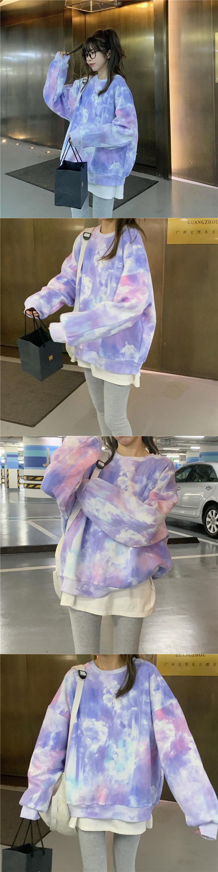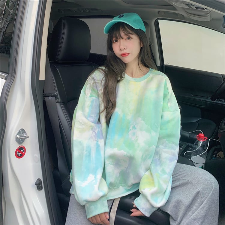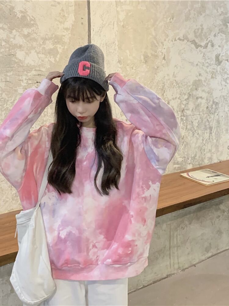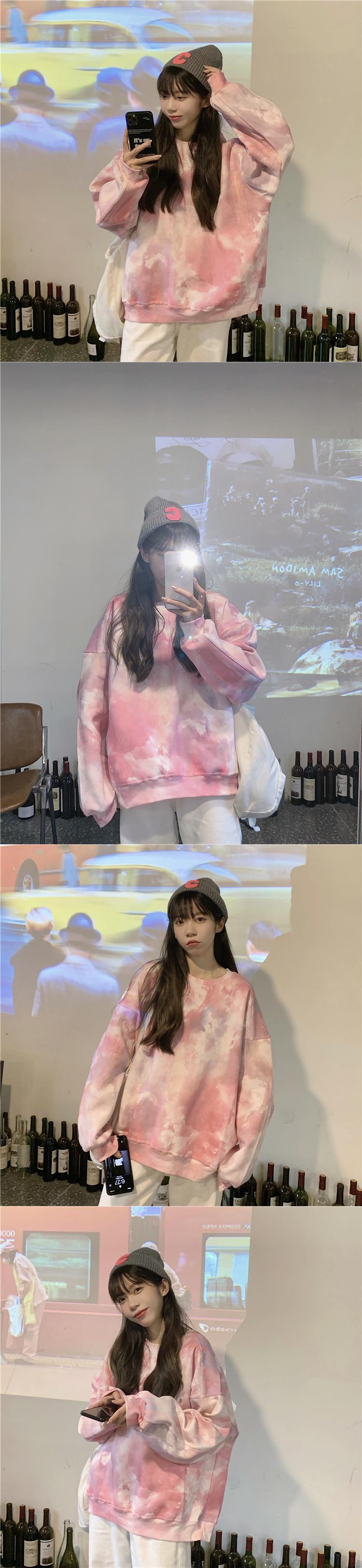 タイダイ ラウンド ネック セーター レディース デザイン センス ニッチ 秋 オーバーサイズ ゆったり 怠惰なスタイル 小さい 長袖 トップ ロング オータム 秋物 Oネック s576133686473816