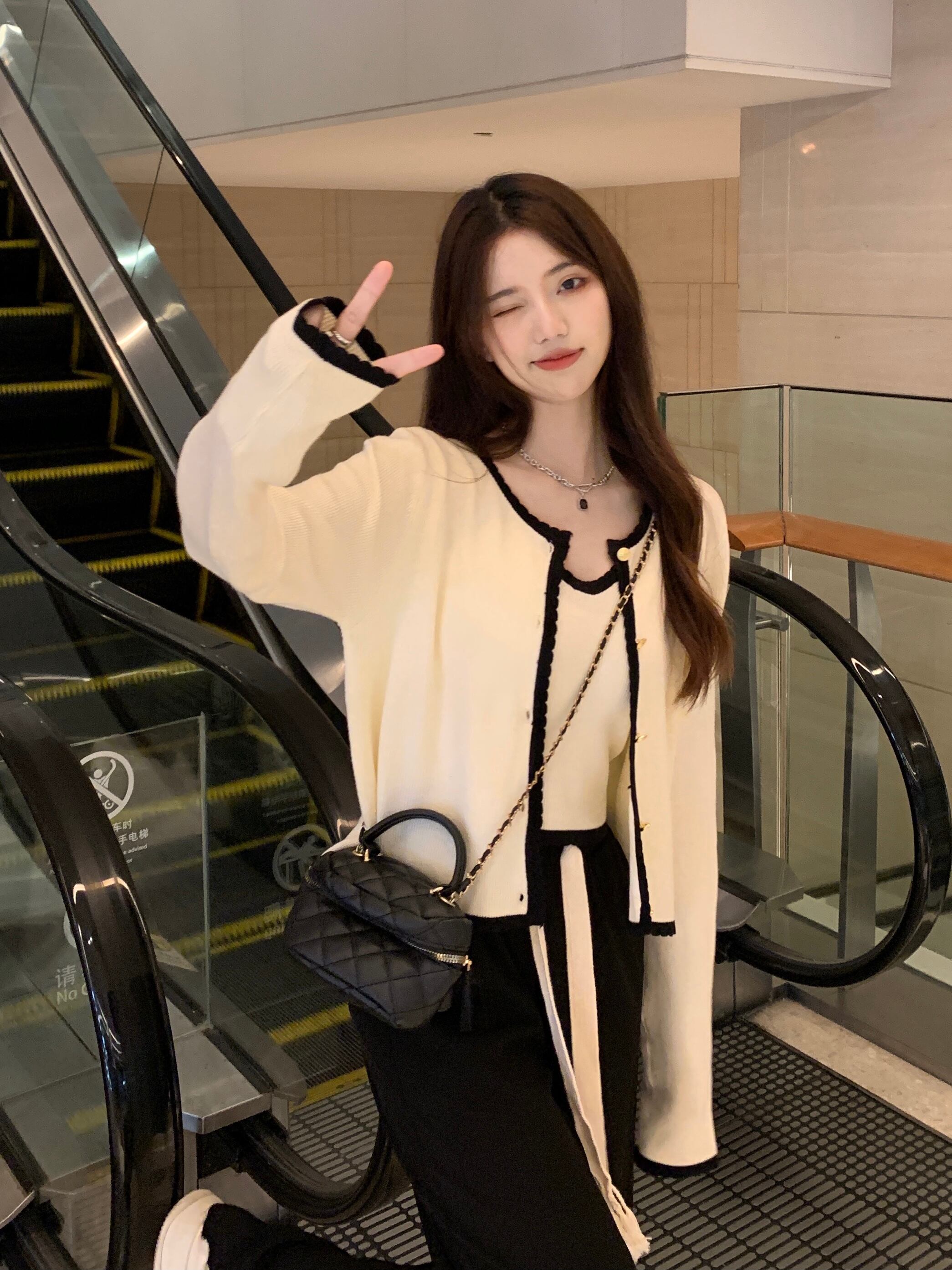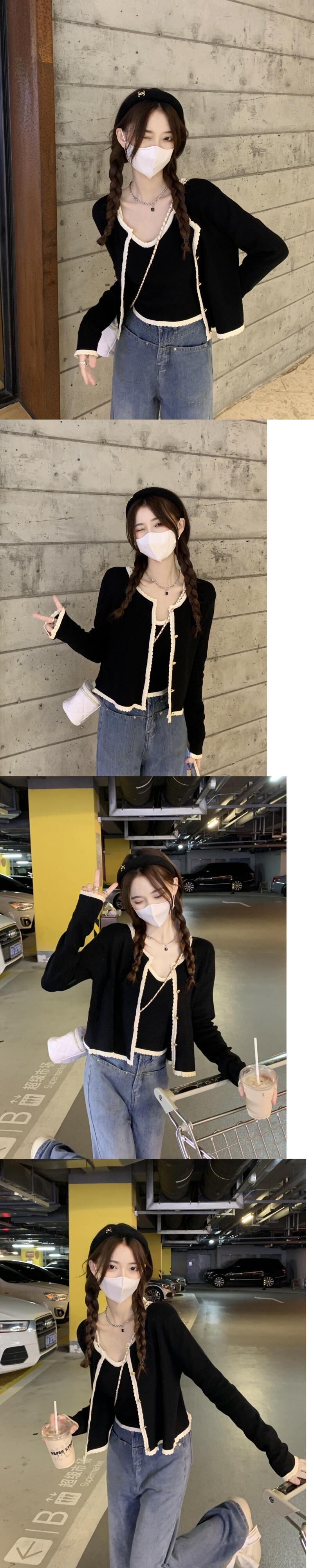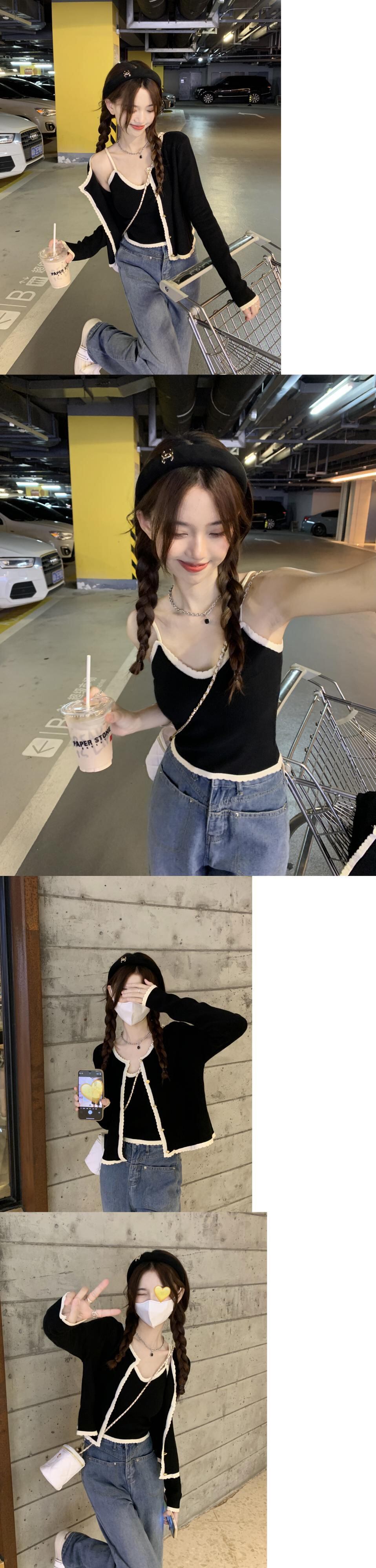 Xiaoxiangfeng ニット カーディガン レディース 秋の優しい着心地 セーター ジャケット ニッチ シック ショート トップ 2点セット オータム 秋物 s576126470493236