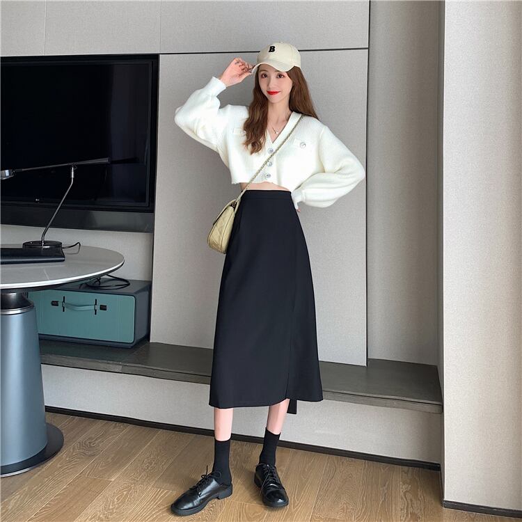 ブラックスカート スプリングオータムハイウェストスリムAラインスタイルロング 春物 秋物 s576133209753777