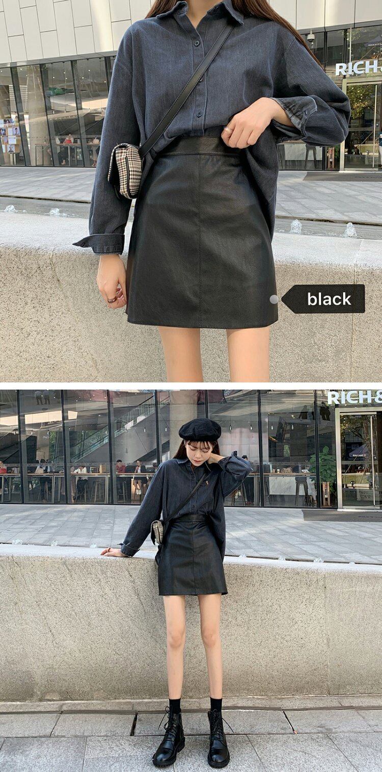 スプリングオータムレザーショートスカート スタイル薄手ハイウェストウェストAライン 春物 秋物 s576190536199735