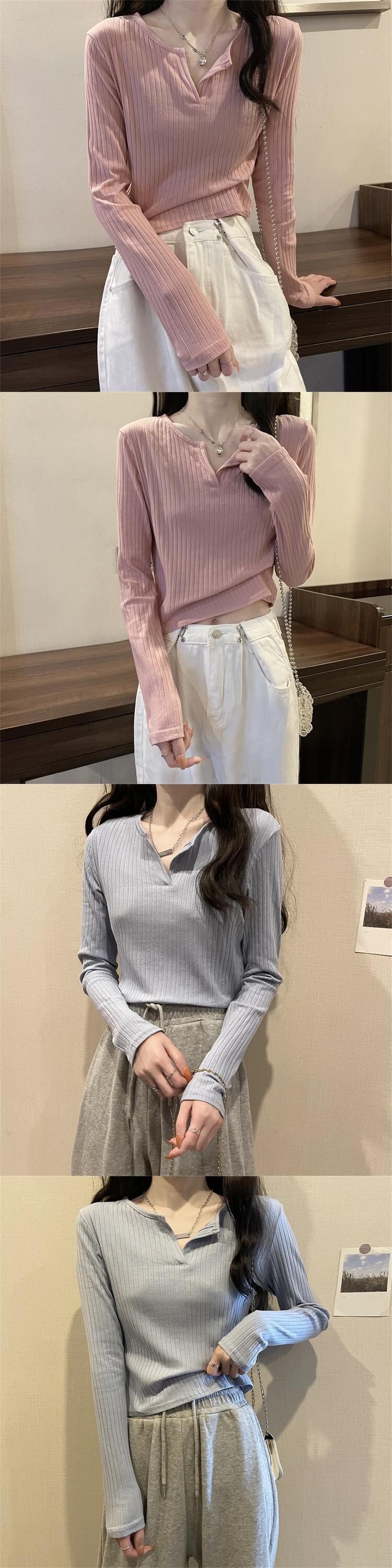 ホワイトボトムス長袖Tシャツ女性の2022年秋の新しいデザインの小さなユニークなユニークなVネックショートトップの服 ロング オータム 秋物 s576189393831556