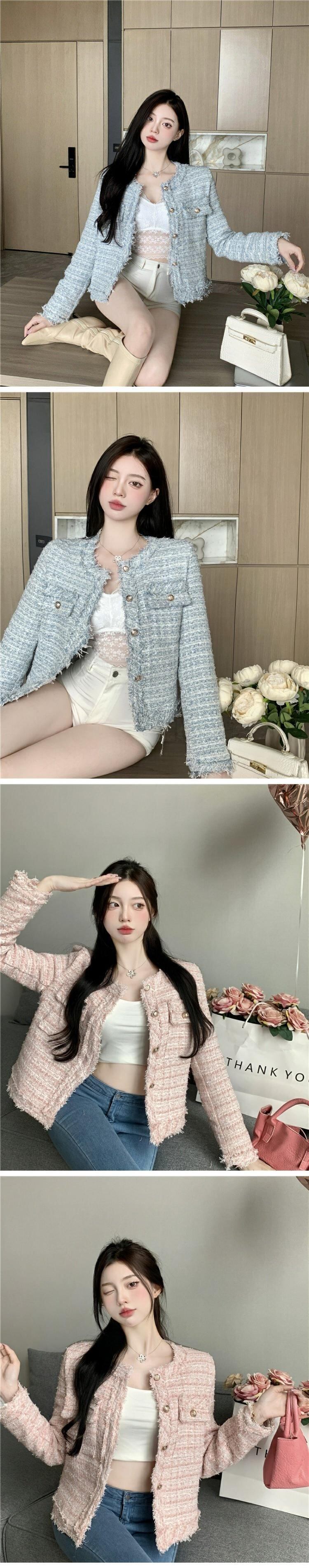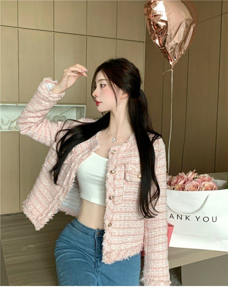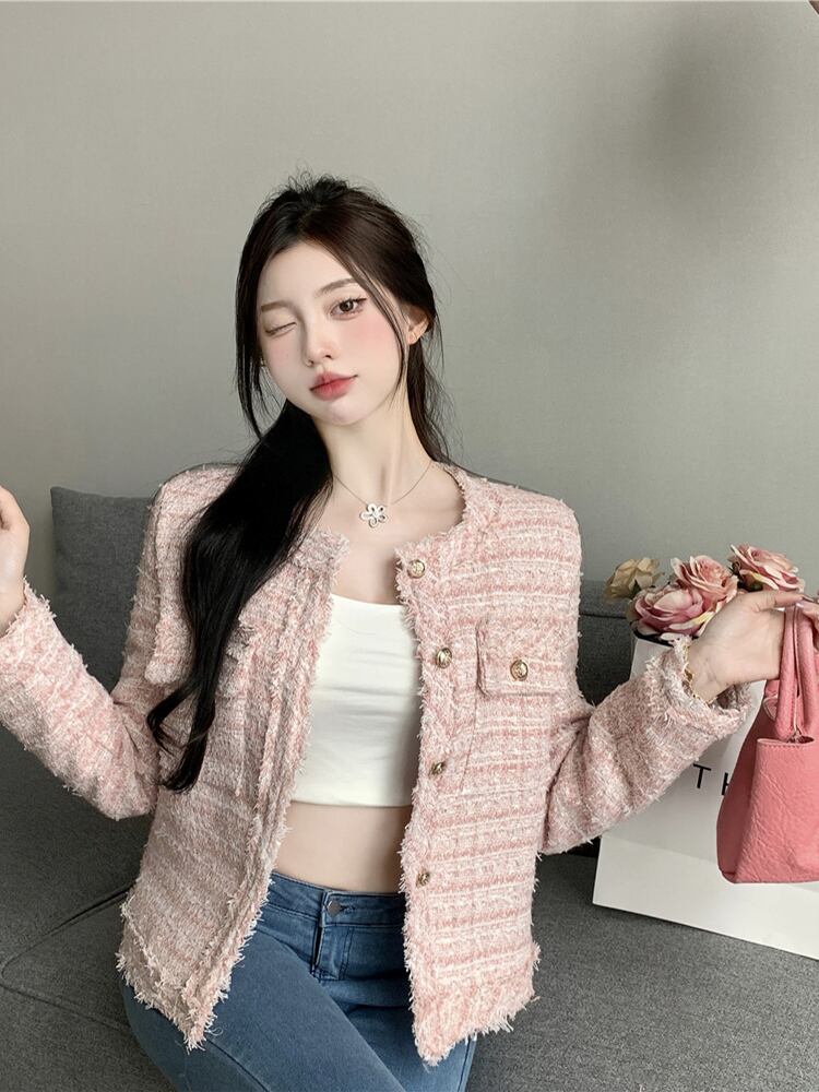 ツィードコート オータムウィンターホワイトショートトップス 秋物 冬物 s576143201716150