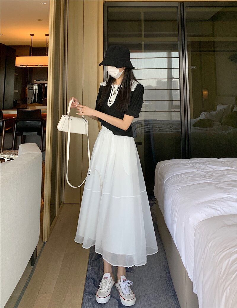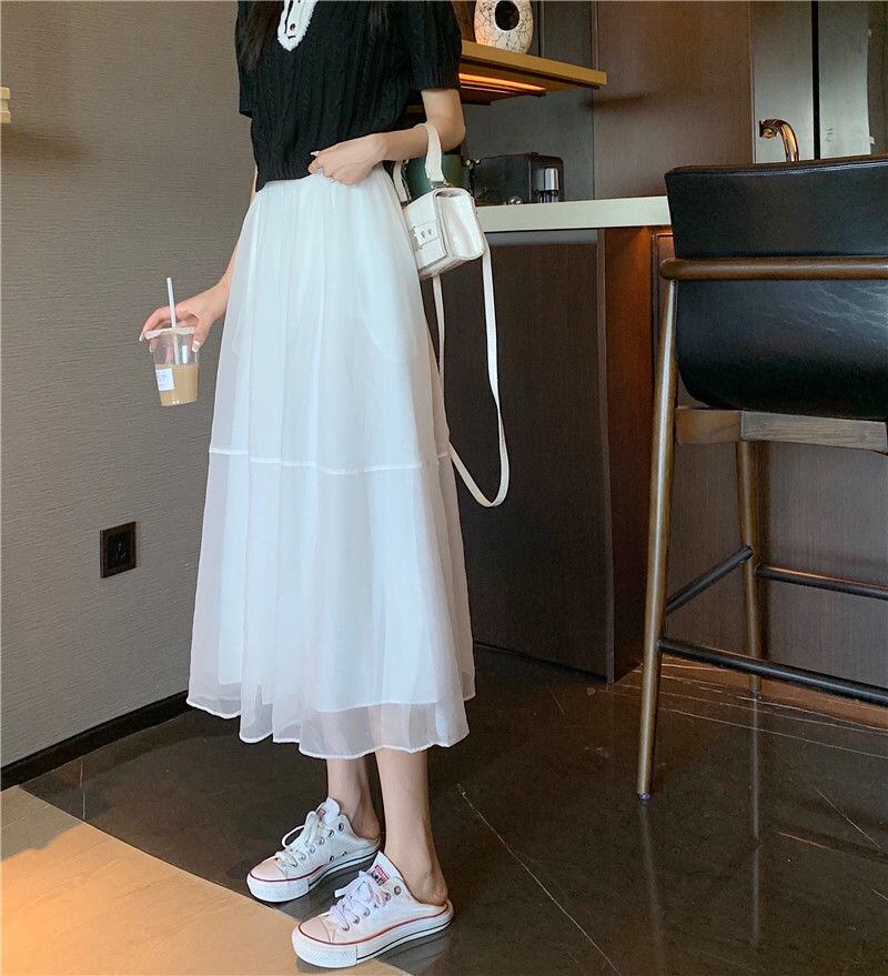 白いスカートの女性の夏のハイエンドのデザイン a ライン スカート ミドル丈傘スカート ハイウエスト スリム スーパー妖精ロング スカート ホワイト サマー 夏物 Aライン s576175174912916