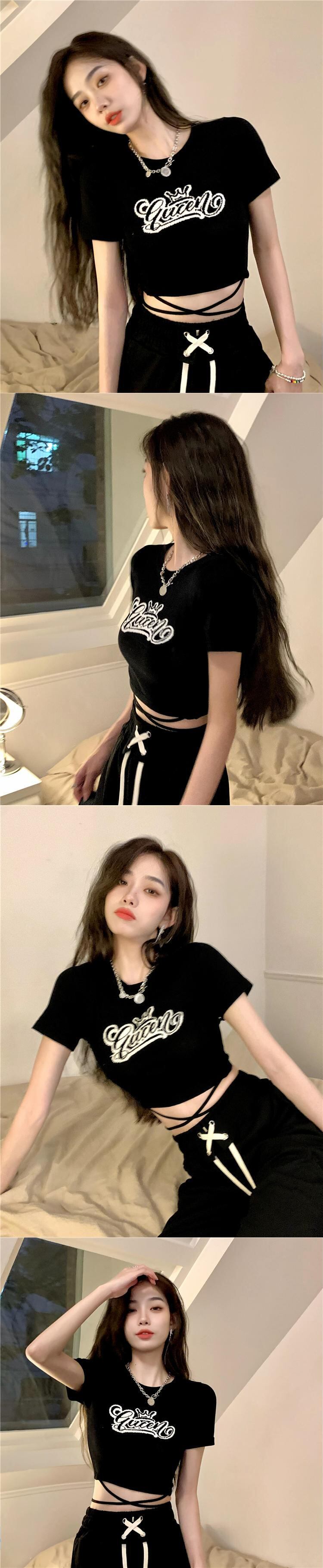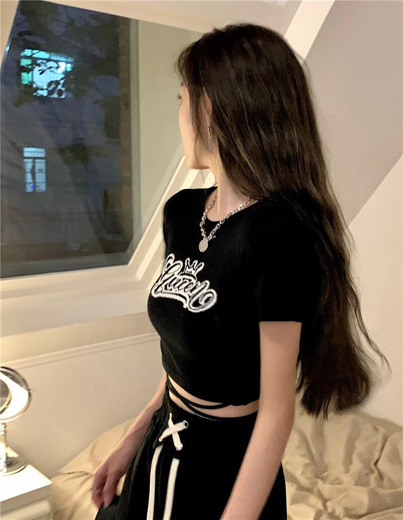 スウィートスパイスブラック半袖 Tシャツ女性の 2022 年夏新デザインスリムスリムシックなショートトップ服 ハーフスリーブ 大人ガーリー キュート カジュアル サマー 夏物 s576191461613674
