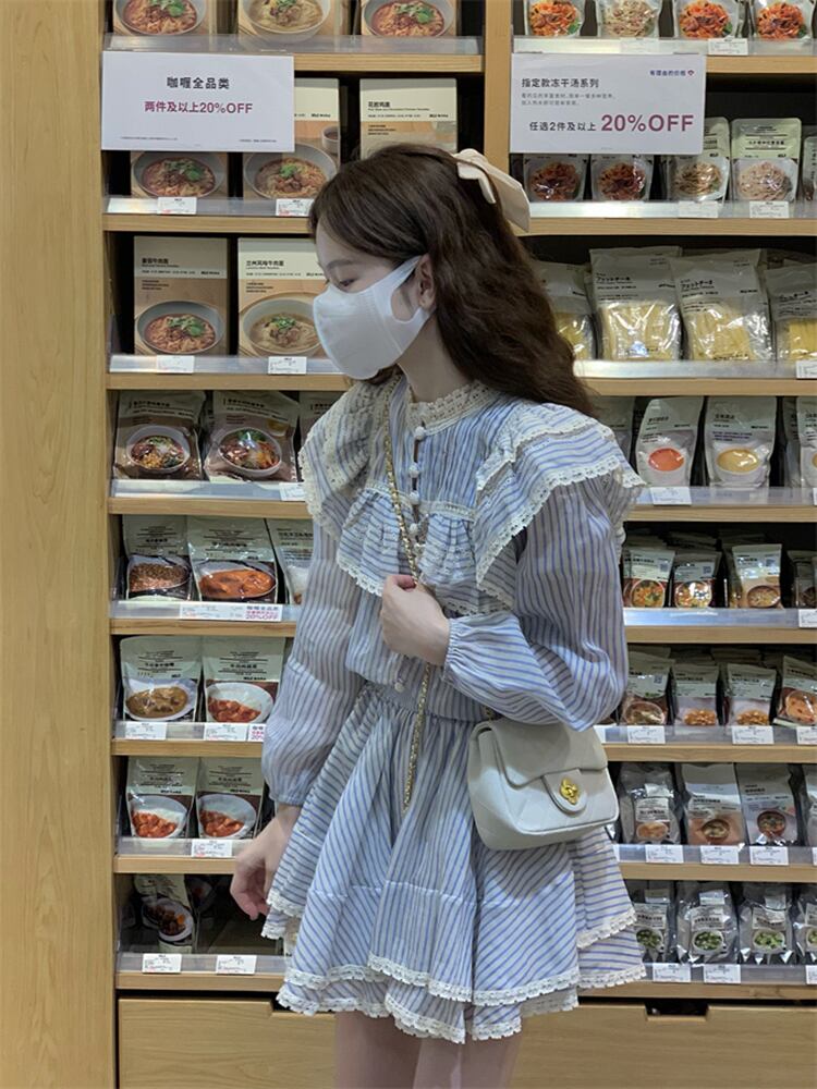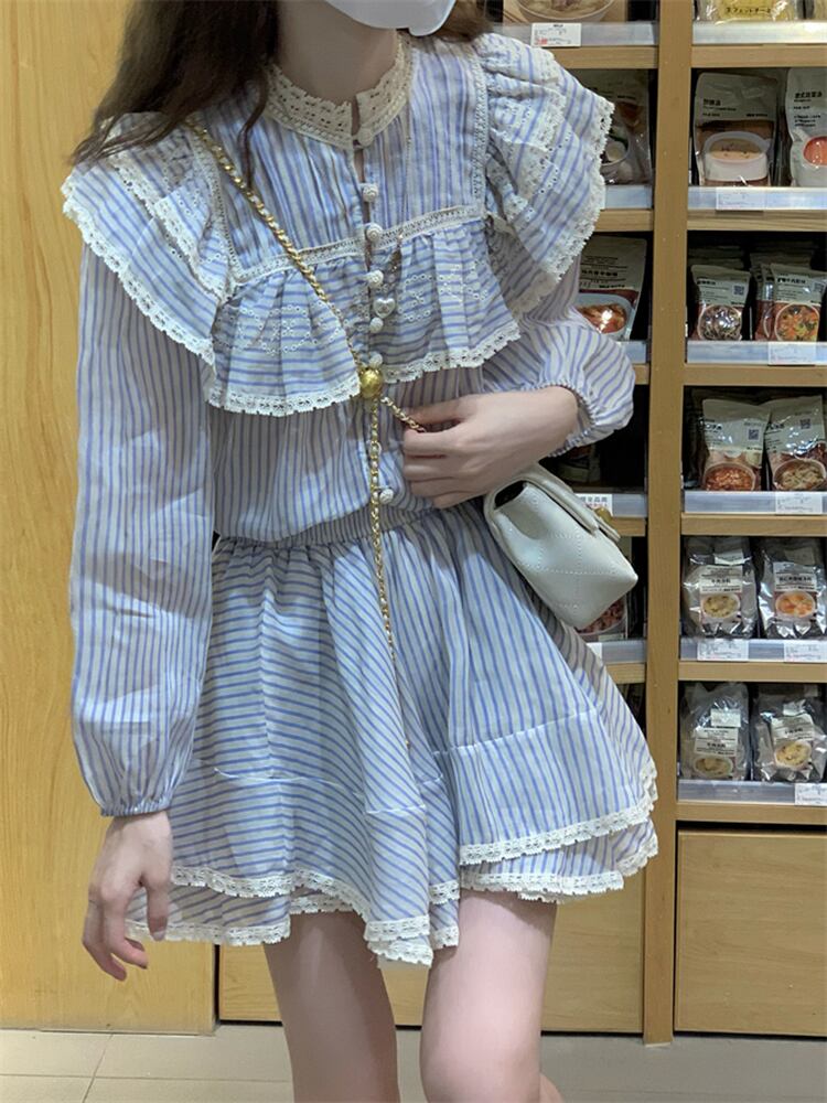 ストライプシャツ オータムスタイルラッフルトップス ロング 大人ガーリー スウィート キュート カジュアル 秋物 s576118980817580