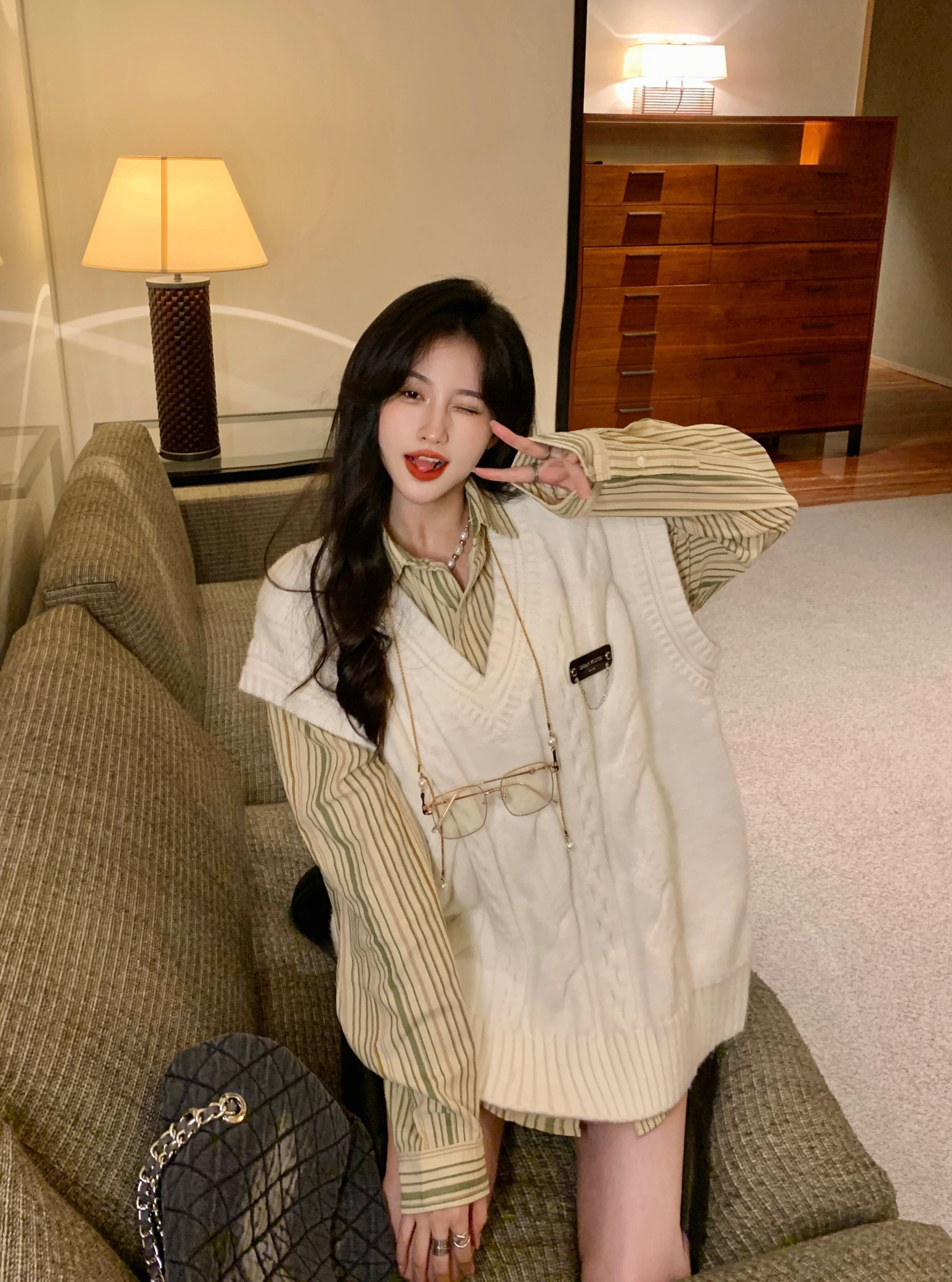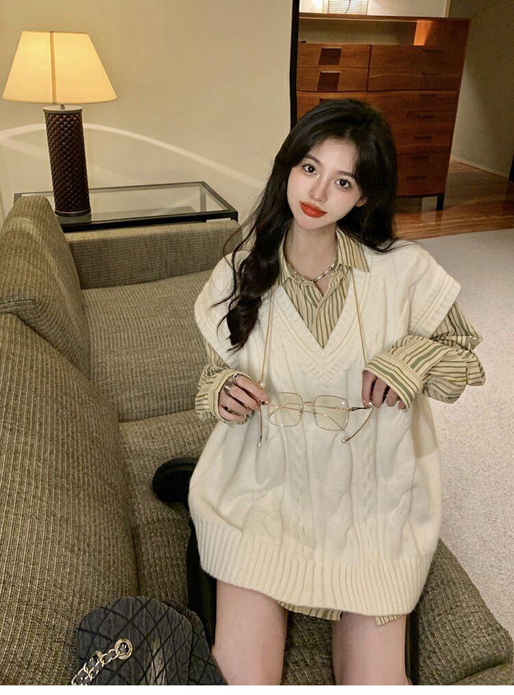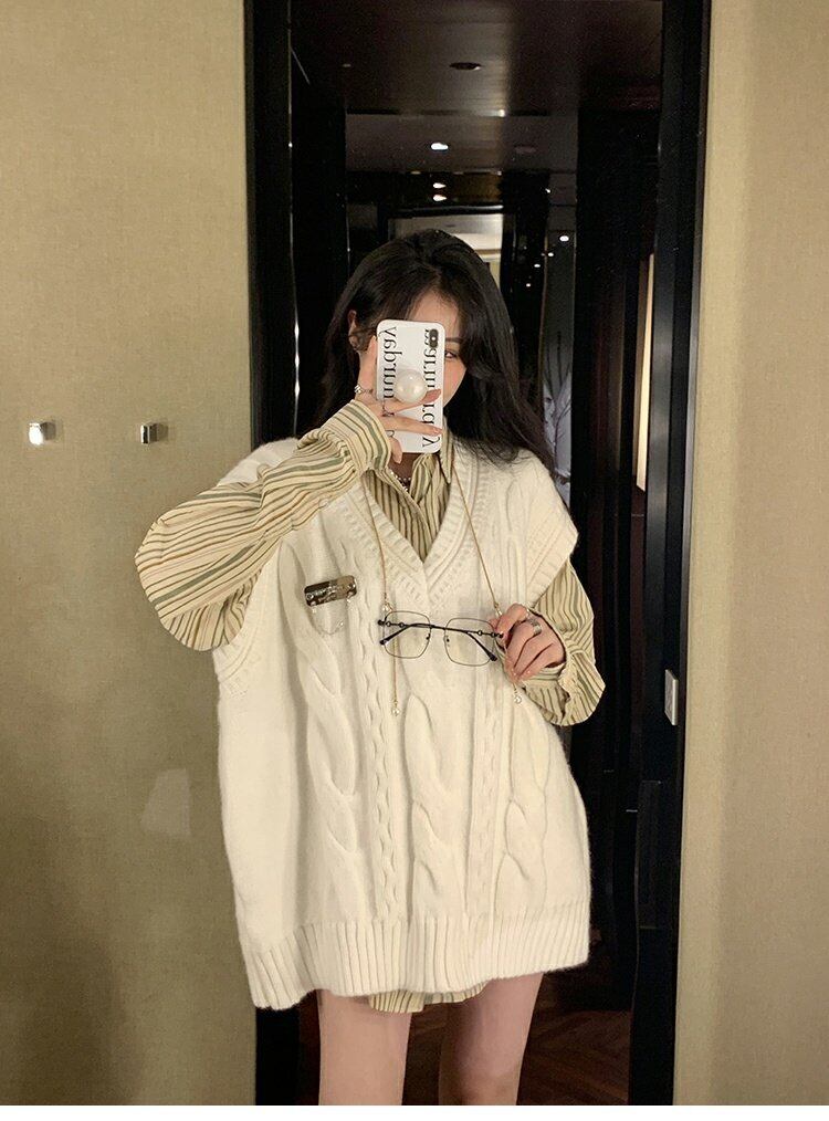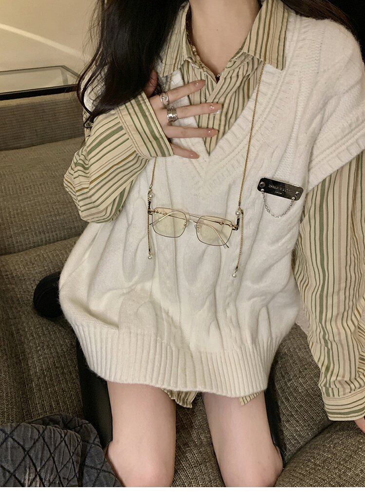 色:アプリコットTwistVest,ストライプdlong袖丈shirt