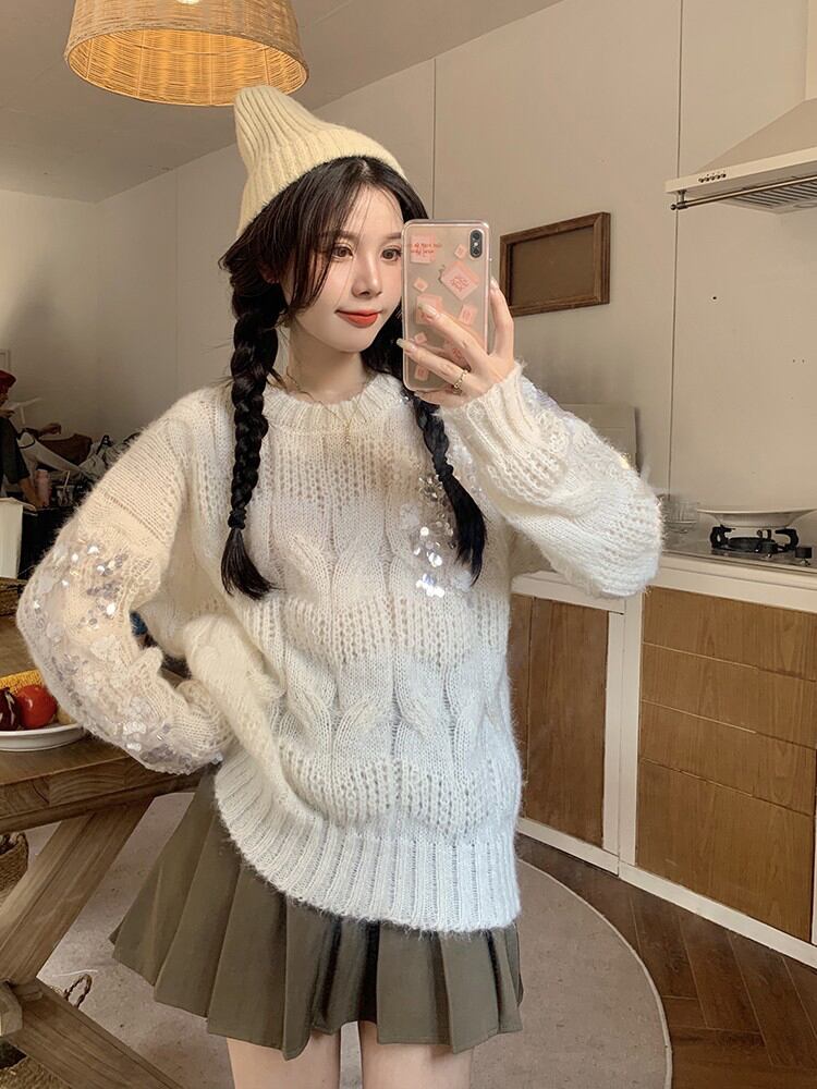 ブルーセーター オータムウィンタールーズトップス 大人ガーリー スウィート キュート カジュアル 秋物 冬物 s576115432128826