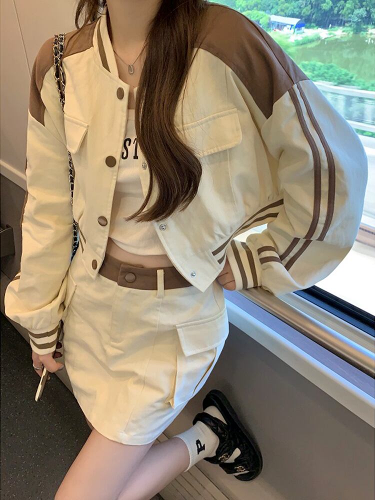 ジャケット オータムスタンダードスタイルショートトップス レトロ ストリート 秋物 s576120733384624