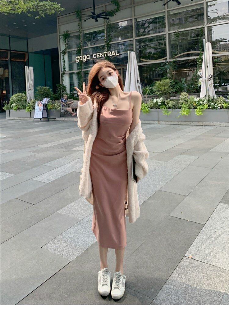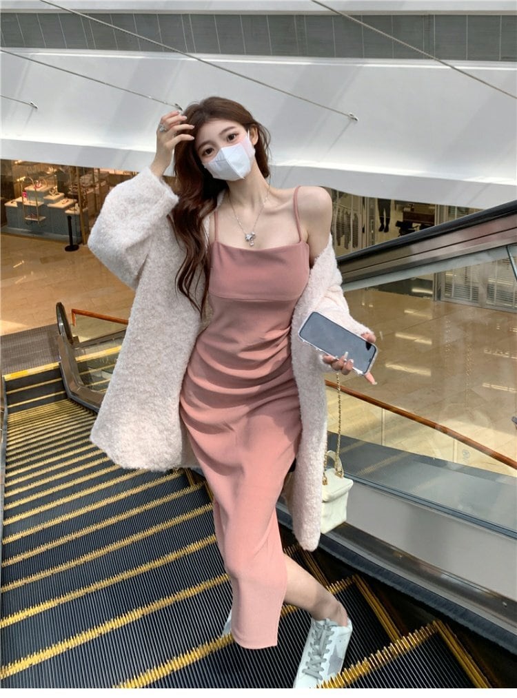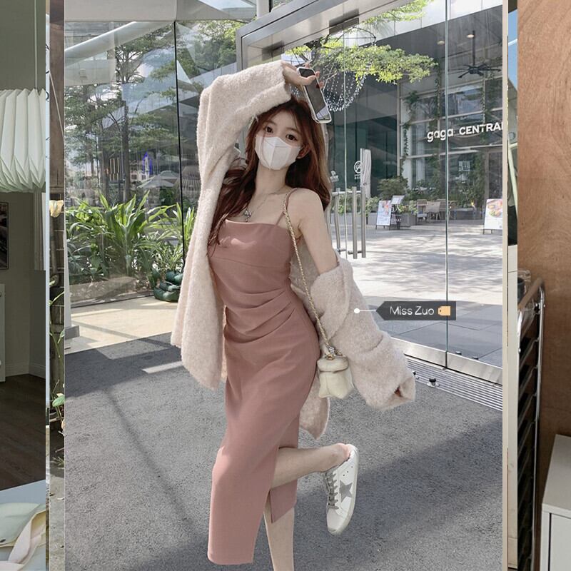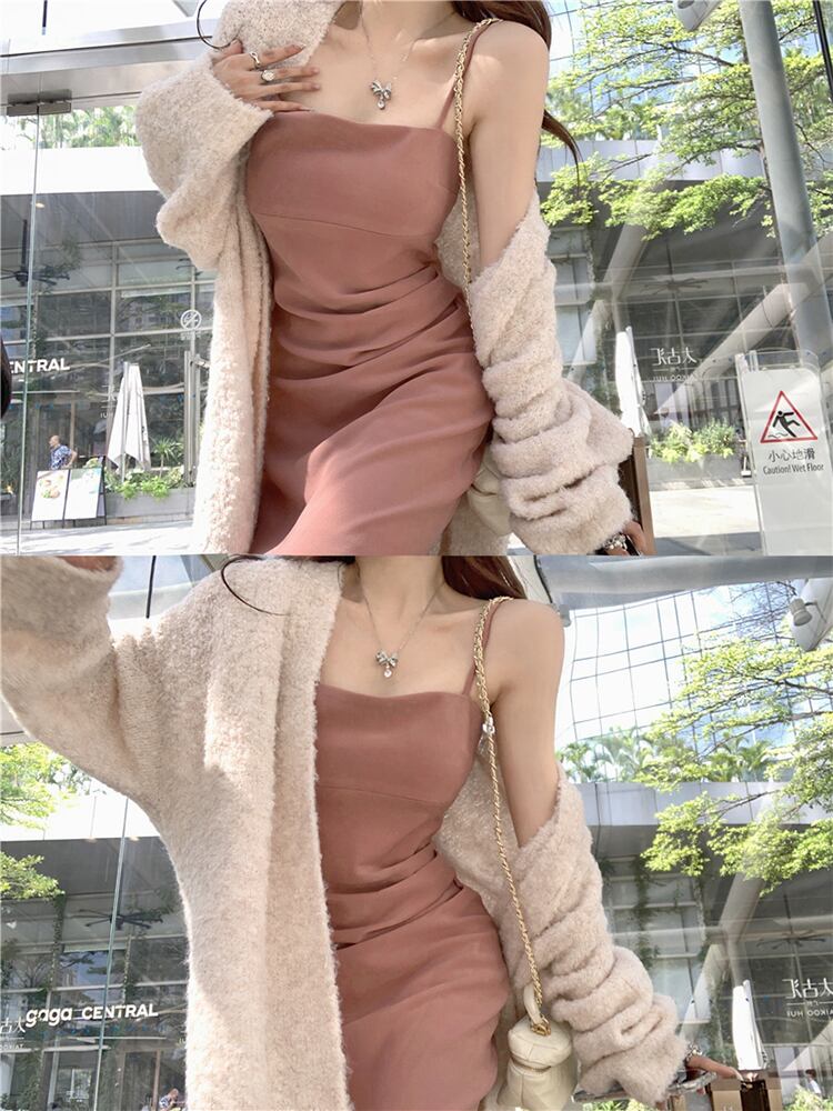 色:ピンクsuspenderスカート,ピンクslingドレス,ホワイトcardigan