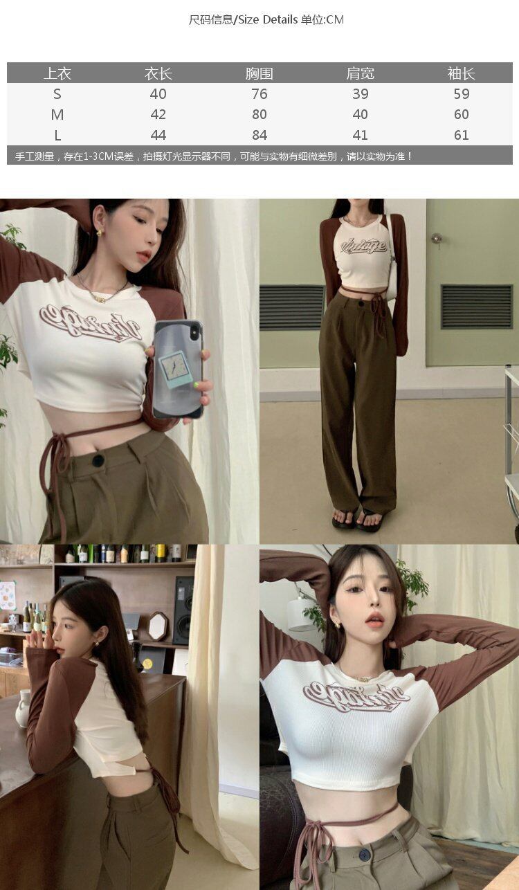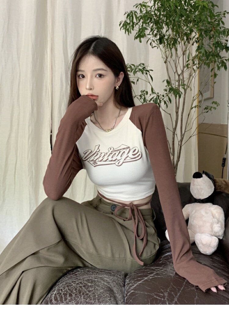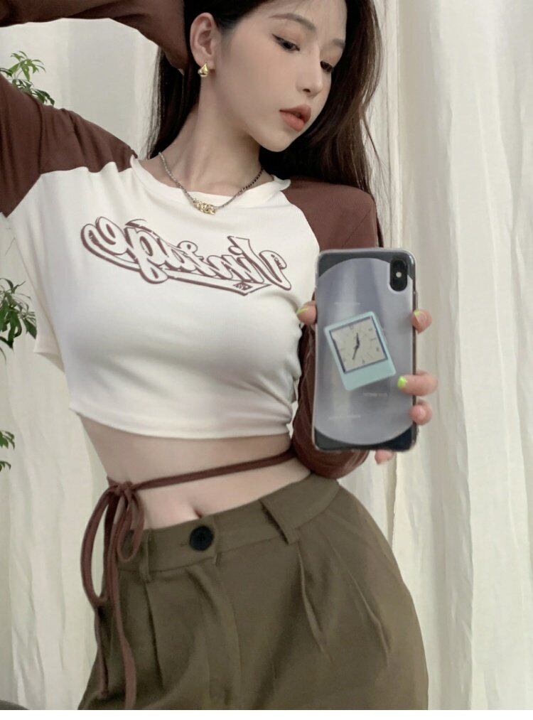 Tシャツ オータムスタンダードバンドショートトップス ロング レトロ 大人ガーリー スウィート キュート カジュアル 秋物 s576140398279265