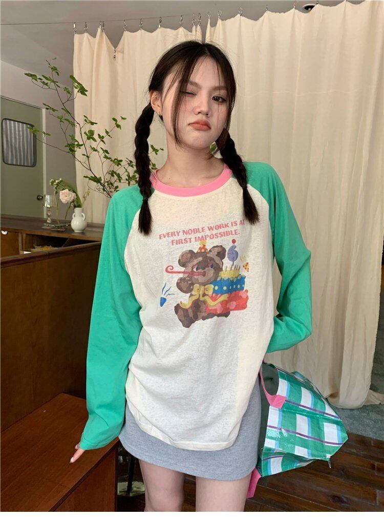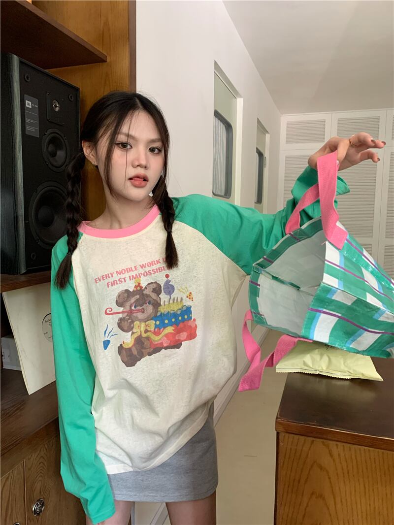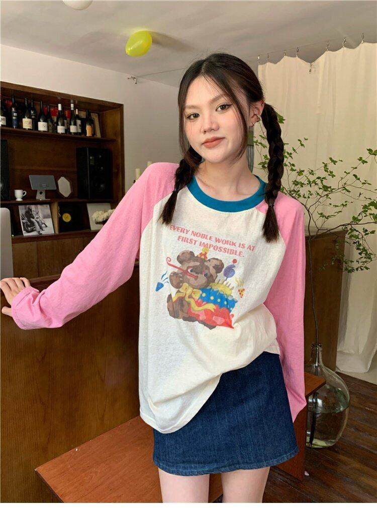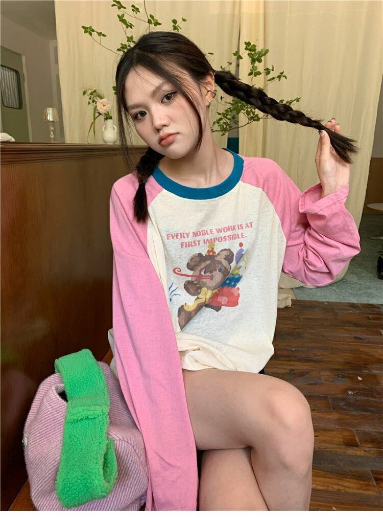 Tシャツ スプリングオータム薄手スタンダードルーズトップス ロング レトロ 春物 秋物 s576187719446675