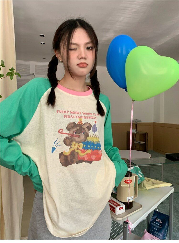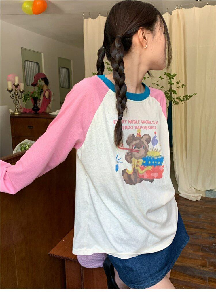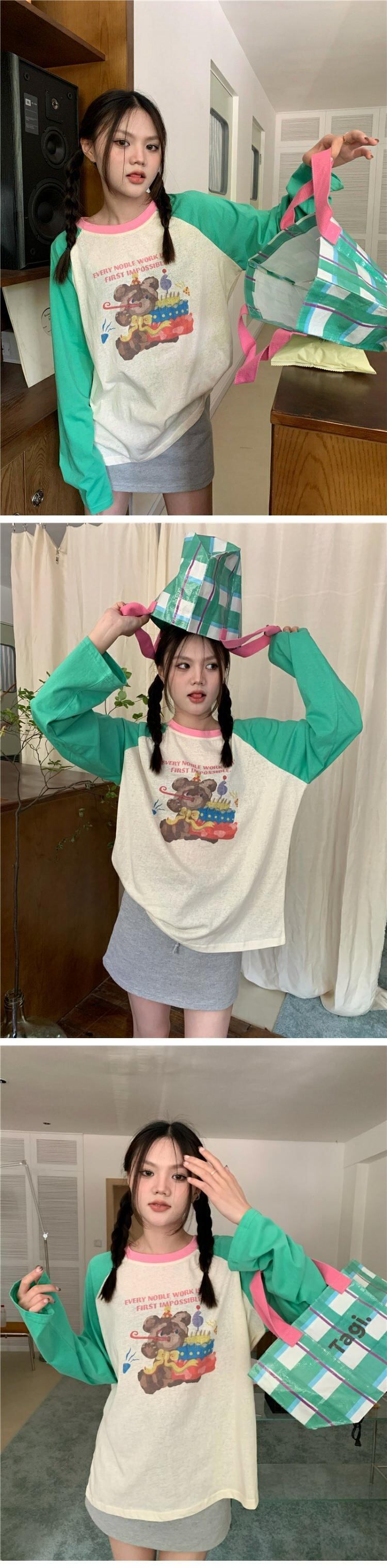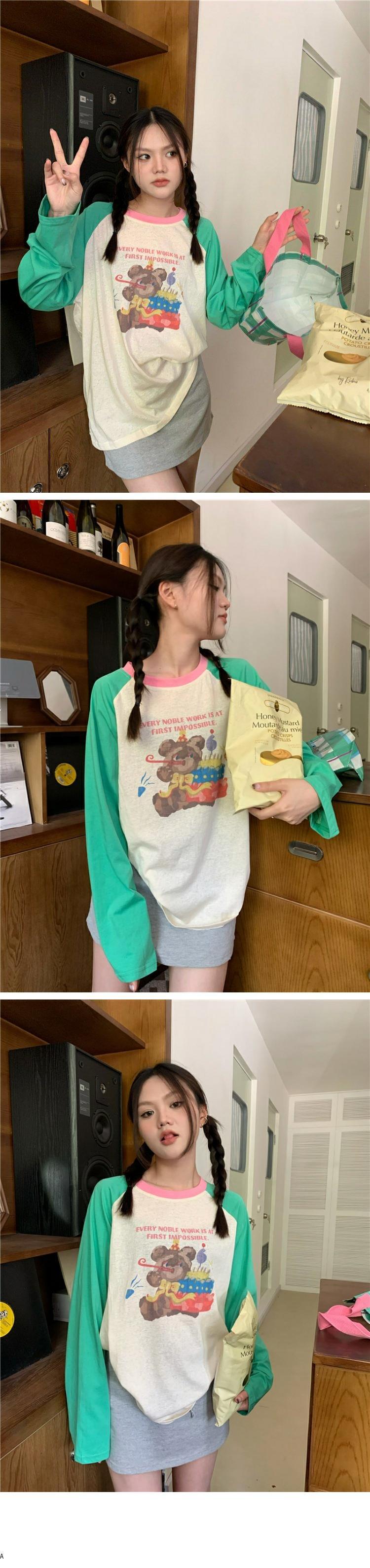 Tシャツ スプリングオータム薄手スタンダードルーズトップス ロング レトロ 春物 秋物 s576187719446675