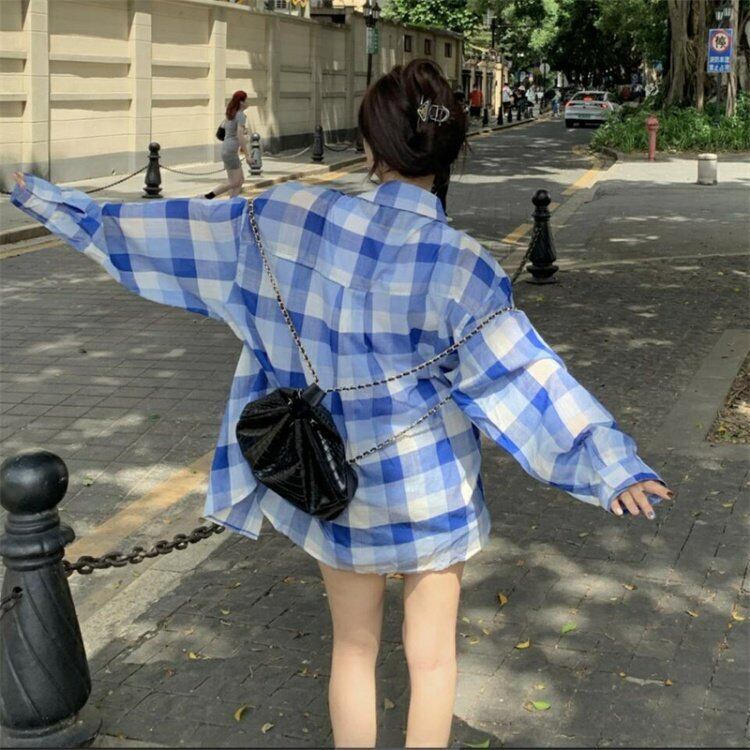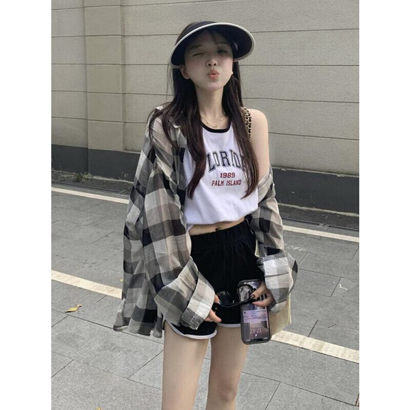 サマー薄手格子柄シャツ ジャケット スタンダードトップス レトロ 夏物 s57612909939003