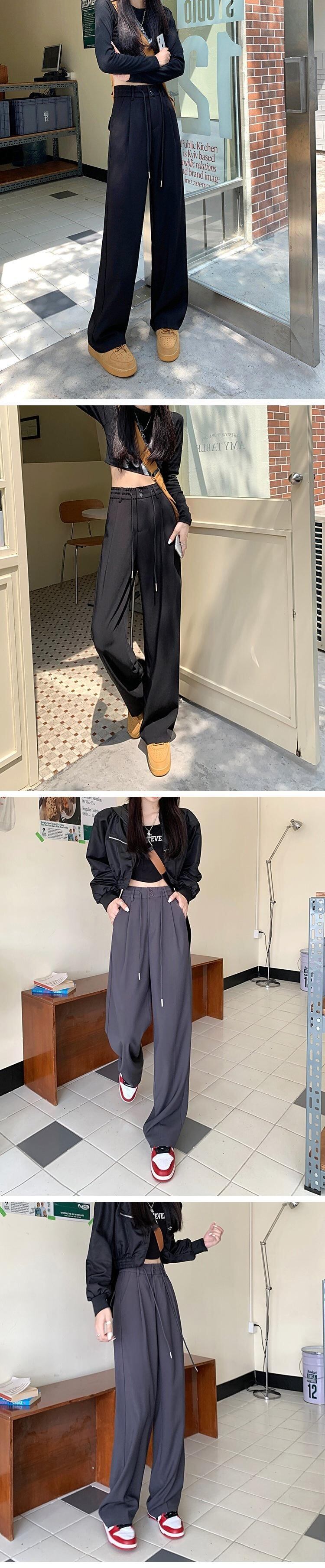 パンツ ハイウェストウェストオータムルーズカジュアルロング レッド 秋物 s576195364529754