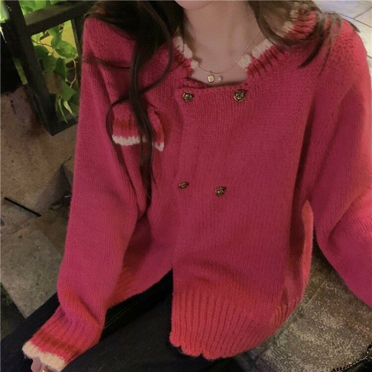 レッドセーター コート オータムスタイルルーズニットカーディガン 秋物 s576181050886570