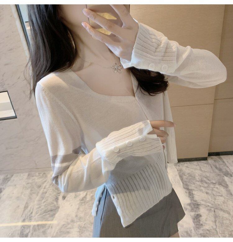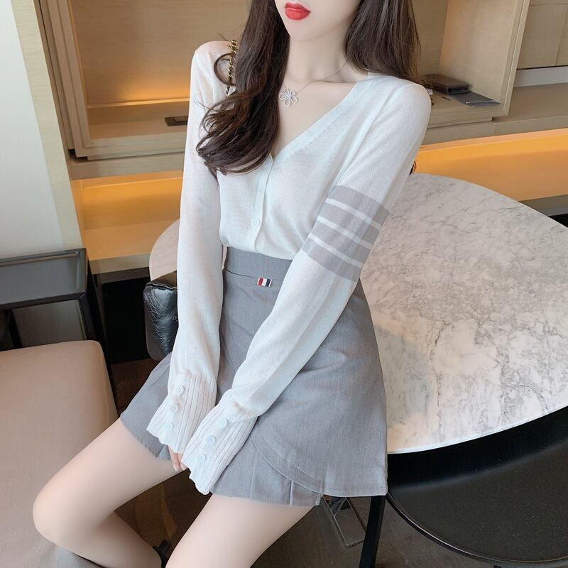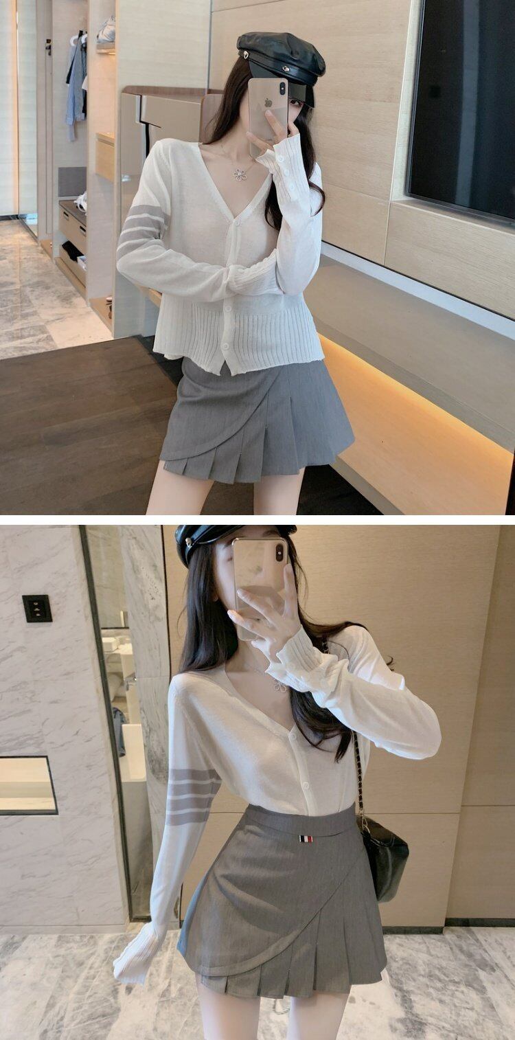 色:Playfulピンクcardigan,All-matchホワイトcardigan,Temperamentグレーcardigan,ホワイトスカート,ブラックスカート,グレースカート