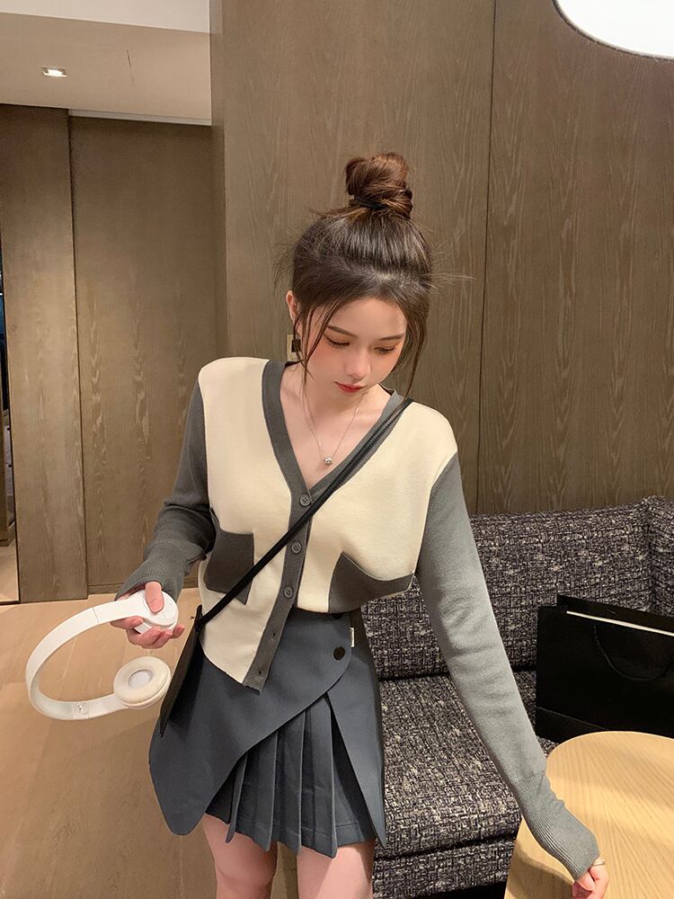 セーター コート オータムスタイルVネックニットカーディガン 秋物 s576184054484052