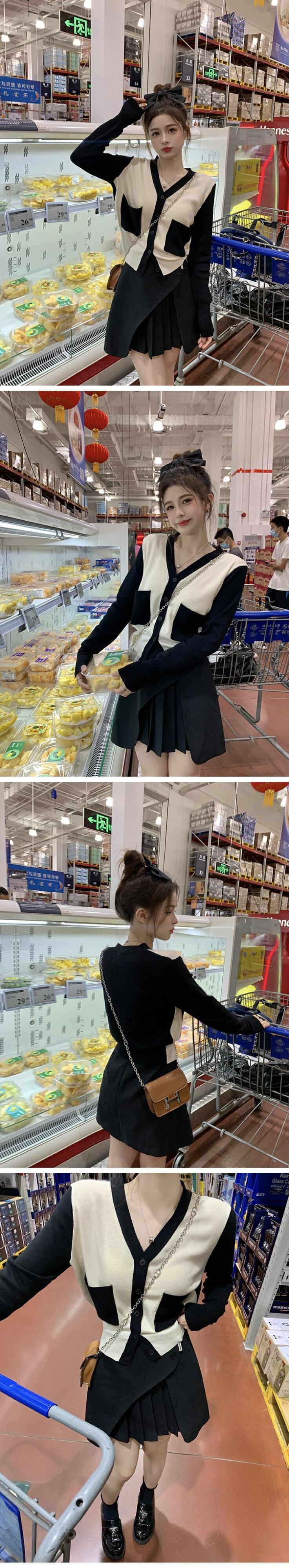 色:グレーcardigan,ブラックcardigan,グレースカート,ブラックスカート