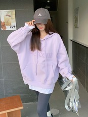 フードセーター オータムトップス ロング 秋物 パープル s576112332649808