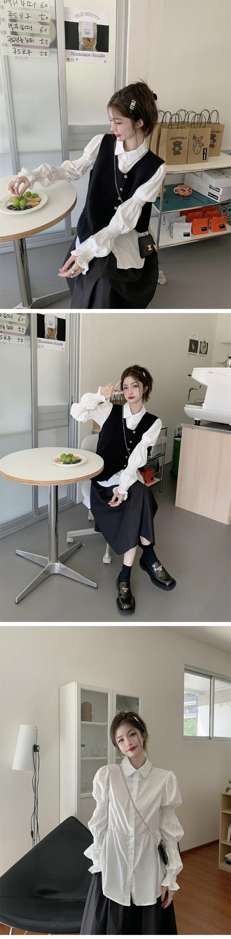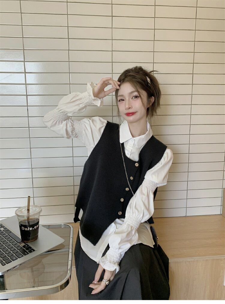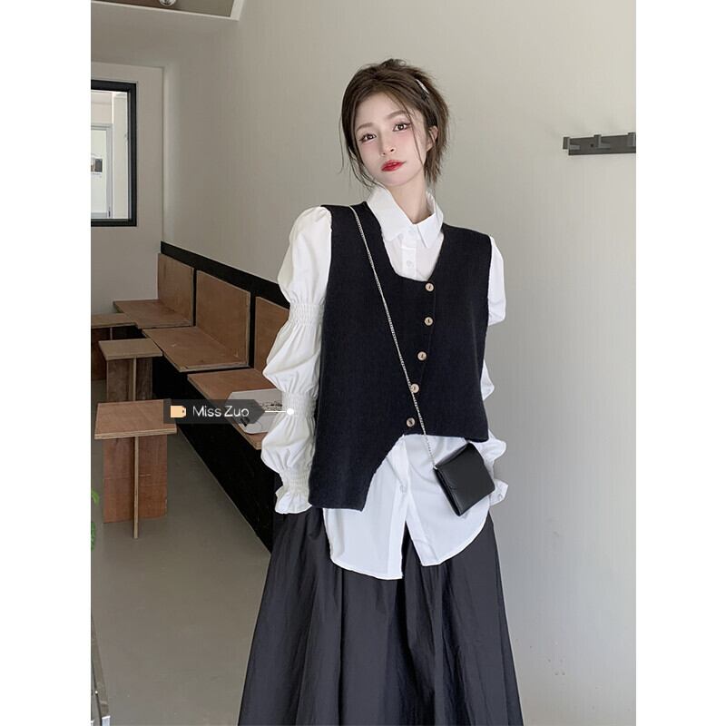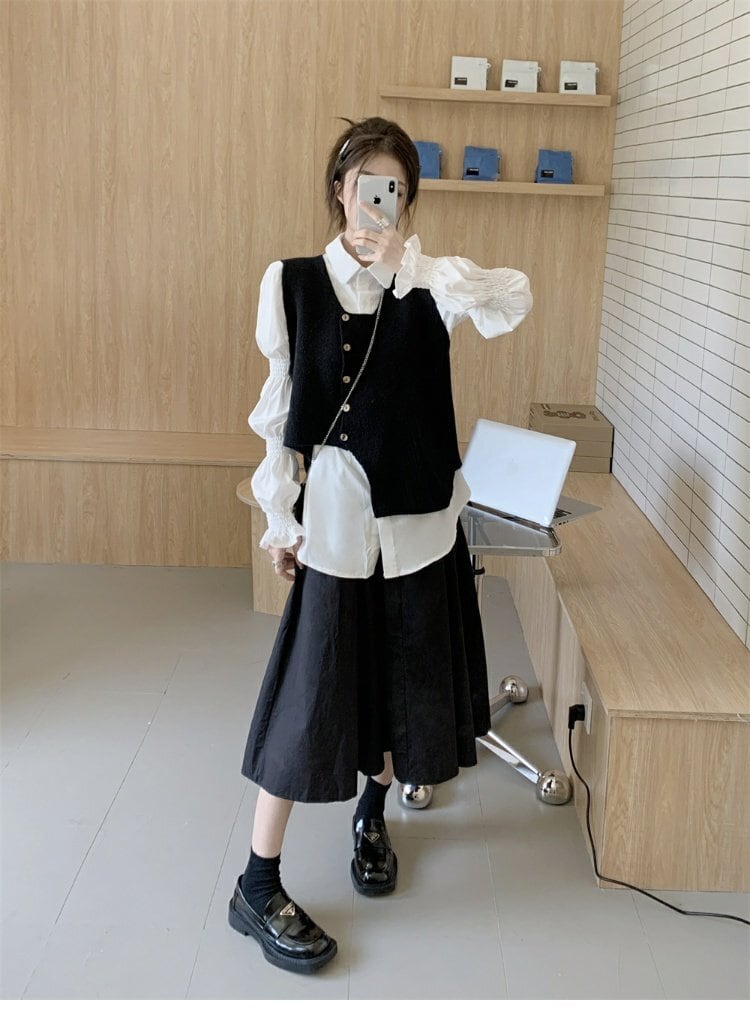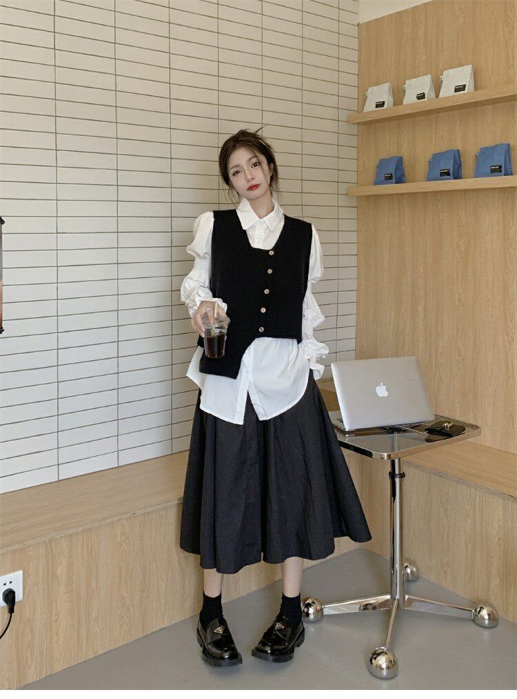 色:ホワイトshirt,ブラックvest,ブラックスカート