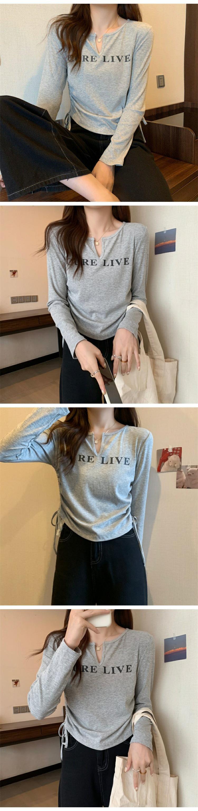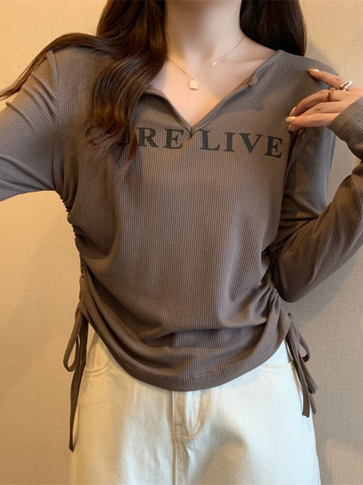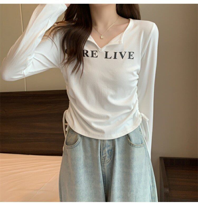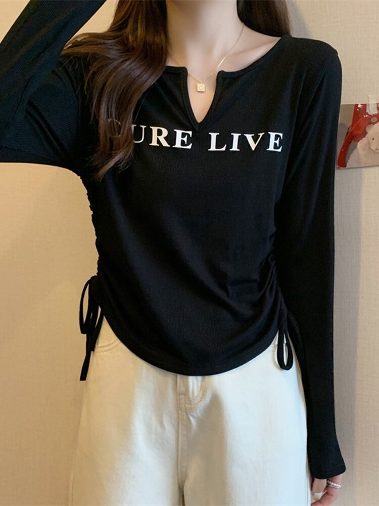 ホワイトTシャツ シャツ オータムウィンタースリムフィットギャザーショートトップス ロング 秋物 冬物 s576194251956807