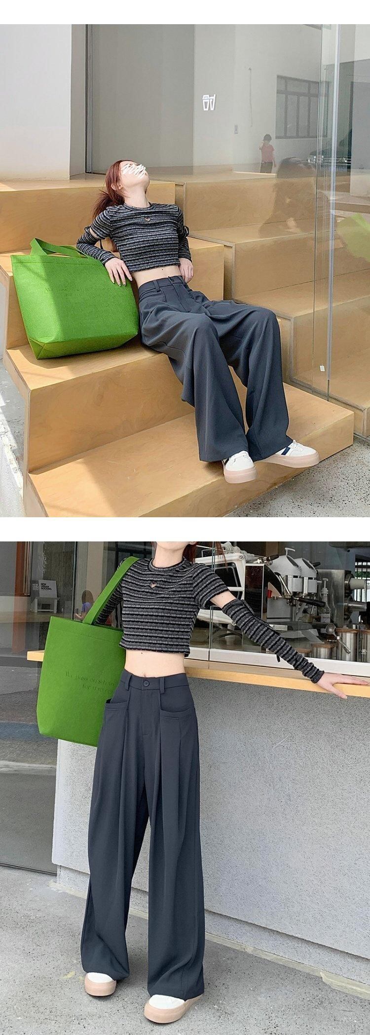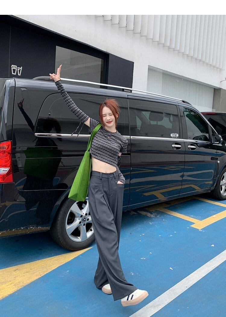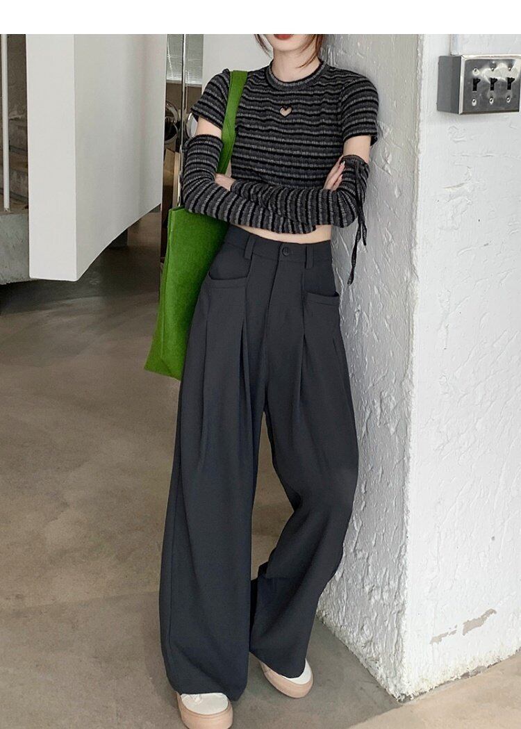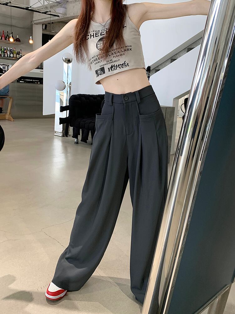 グレーパンツ オータムハイウェスト薄手カジュアル 秋物 s576152952211223