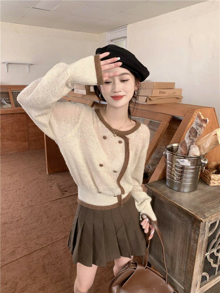 セーター コート オータムウィンターショートニットカーディガン 秋物 冬物 s576113565701408